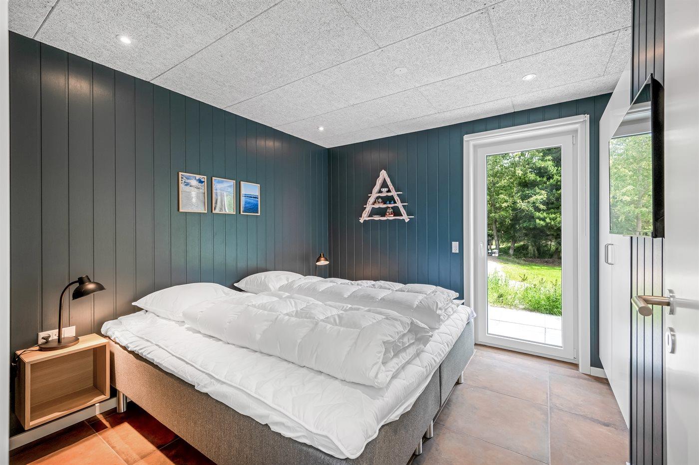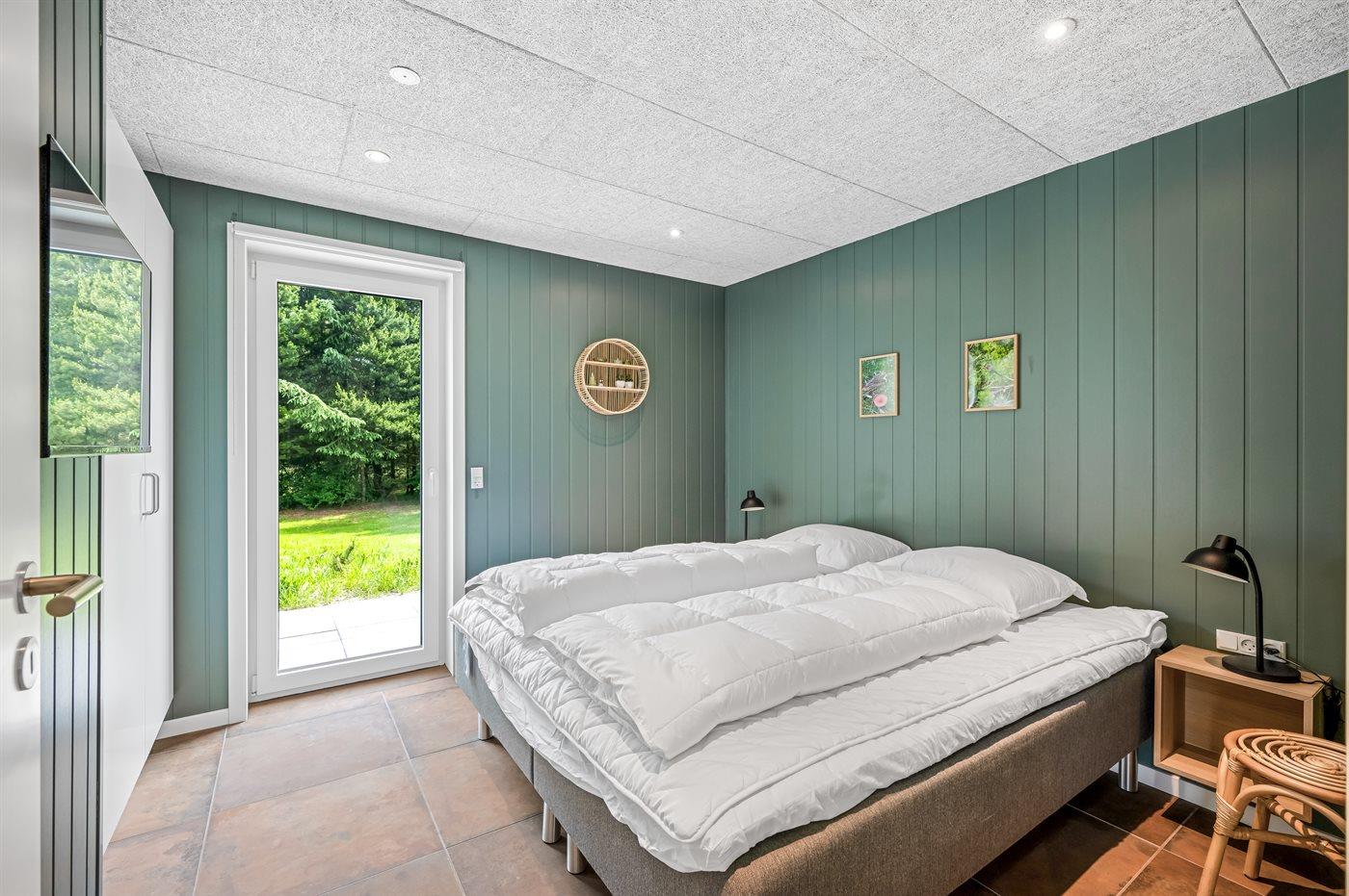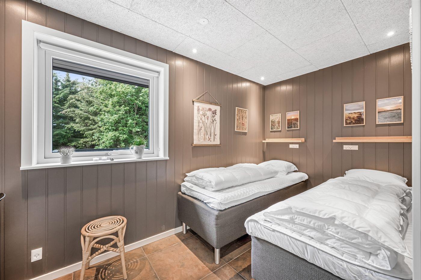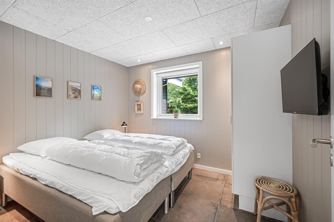 Der er i alt 5 soveværelser. Sovepladserne fordeler sig på: 8 sovepladser i dobbeltsenge. 2 sovepladser i enkeltsenge. 2 sovepladser på madrasser. 2 af disse sovepladser befinder sig på husets hems.