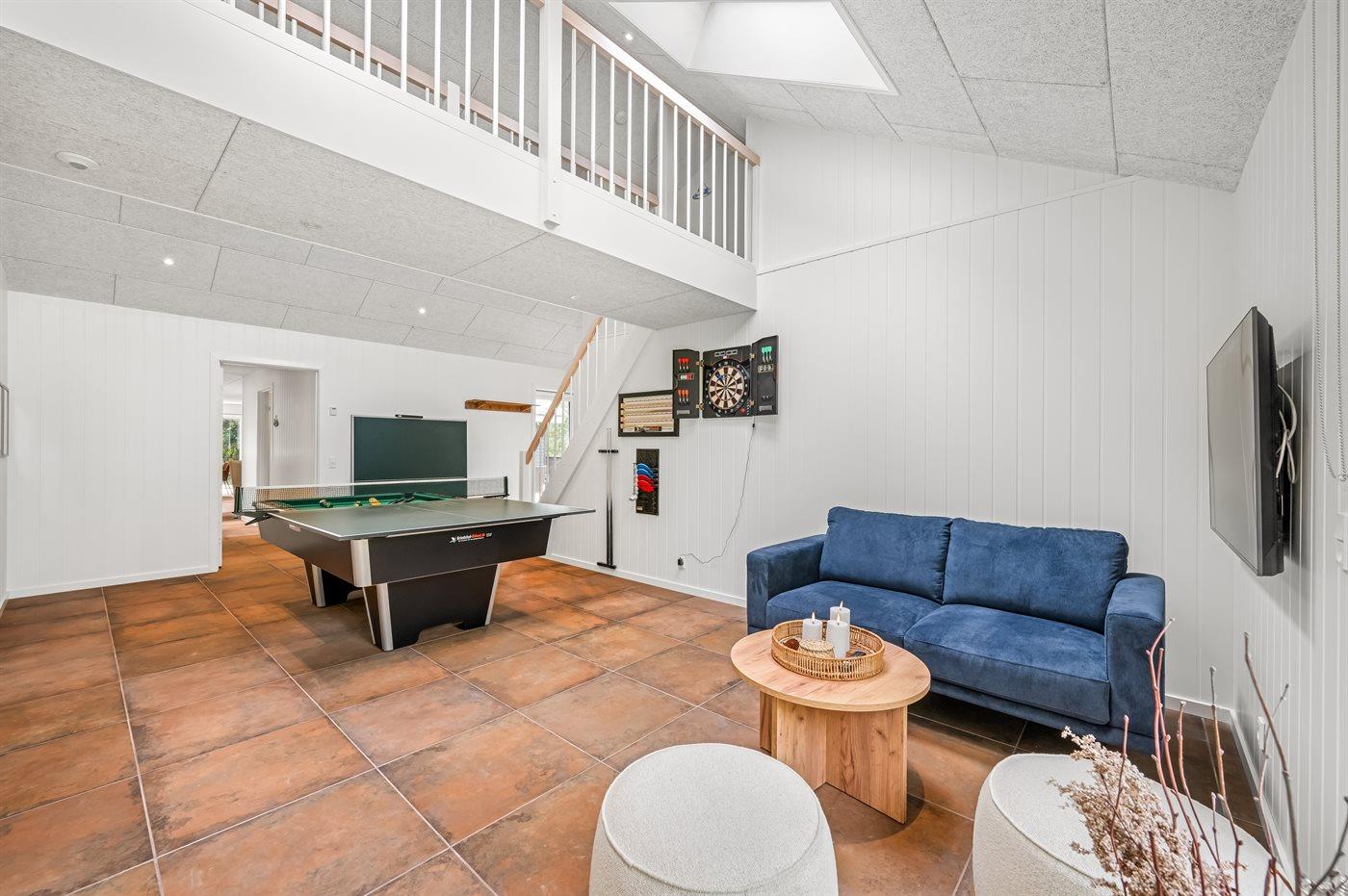 Luksuriøst sommerhus i Blåvand med spa, sauna og aktivitetsrum tæt på natur og hav.