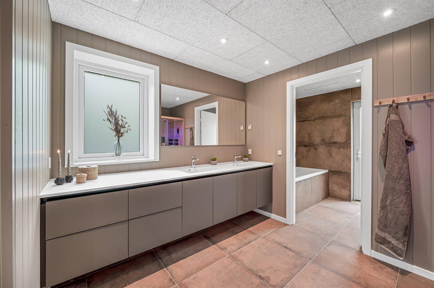 Skønne badeværelser, det ene er udstyret med Infrarød sauna og badekar til ultimativ velvære.