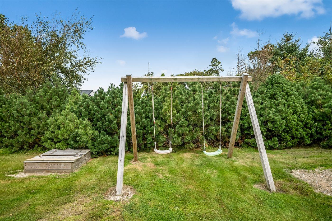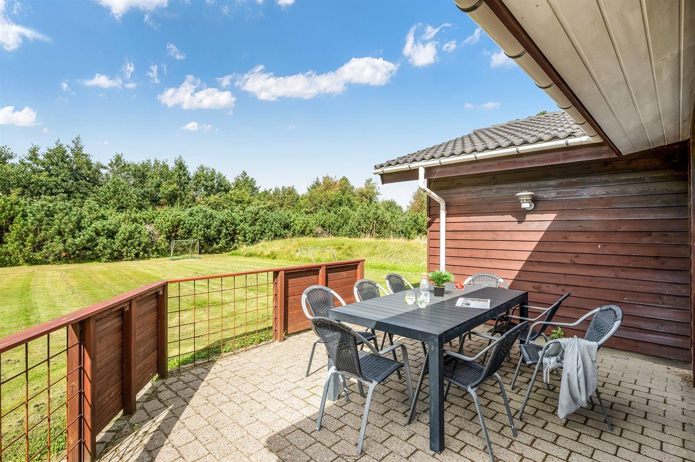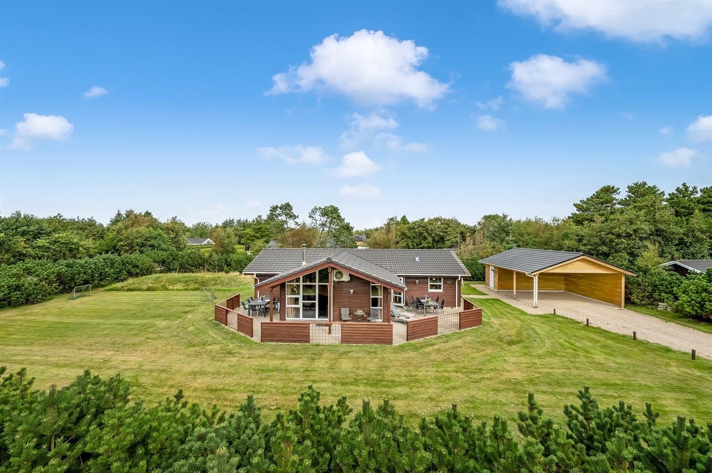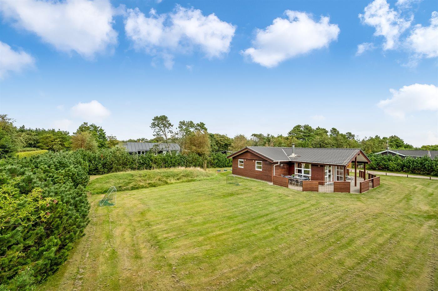 Ferieboligen er beliggende på en 1538 m² stor naturgrund. Der er 550 m til havet. Nærmeste forretning er beliggende i en afstand af 350 m. Til ferieboligen hører åbent terrasseareal. Desuden er der overdækket terrasse. Der er redskabsrum. Gynge. Sandkasse. Fodboldmål. Grill til rådighed. Der er carport til rådighed. Der er installeret stik til opladning af elbil. Parkering ved ferieboligen.