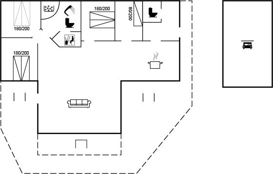 Der er i alt 4 soveværelser. Sovepladserne fordeler sig på: 6 sovepladser i dobbeltsenge. 1 soveplads i enkeltseng. Derudover er der 1 stk. barneseng.