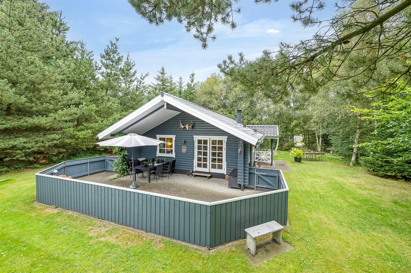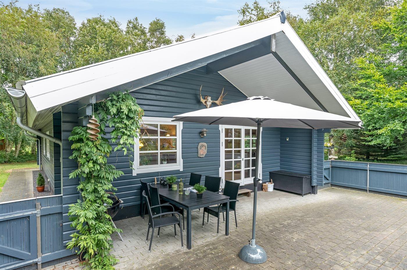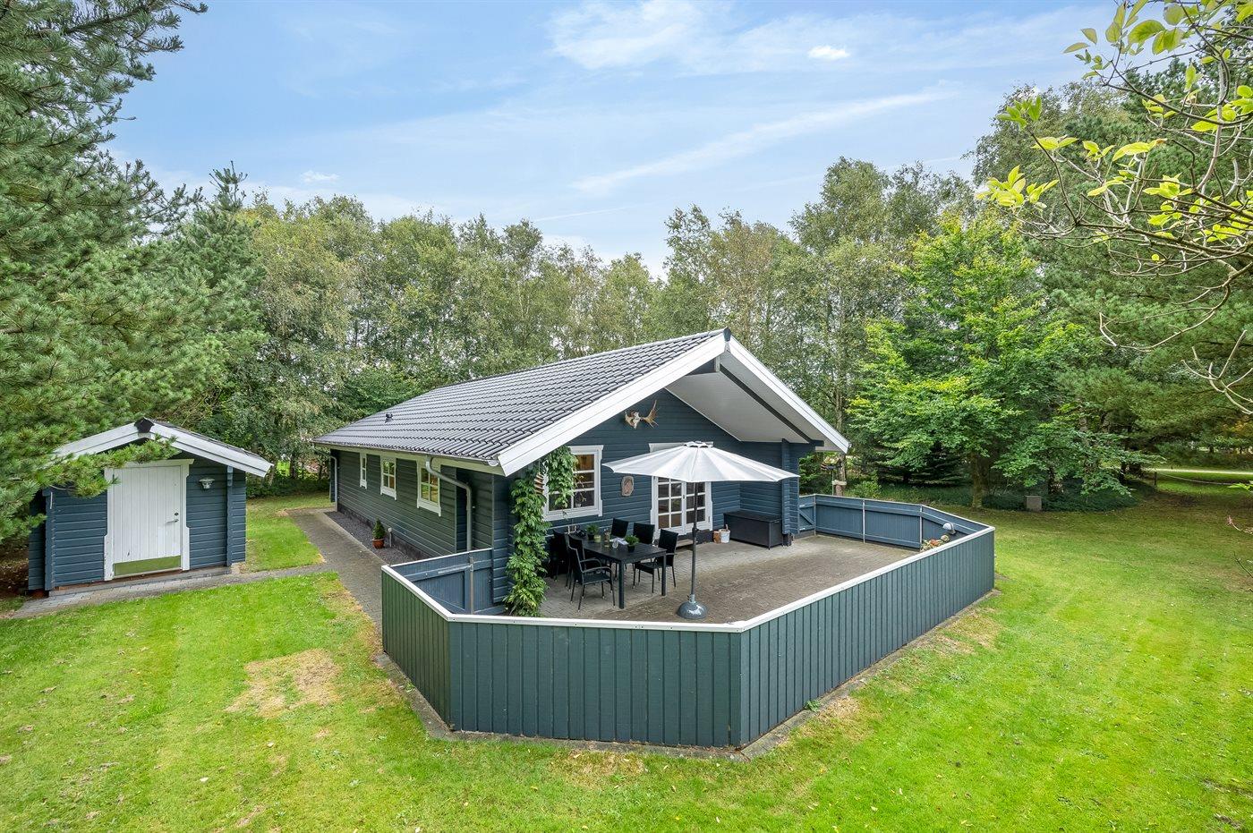 Ferieboligen er beliggende på en 1900 m² stor naturgrund. Nærmeste forretning er beliggende i en afstand af 800 m. Desuden er der overdækket terrasse. Grill til rådighed. Parkering ved ferieboligen.