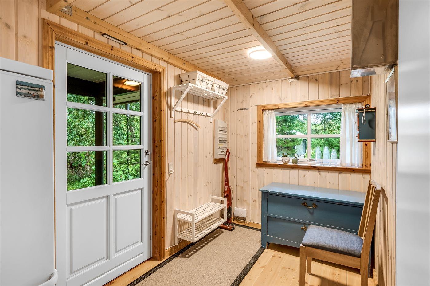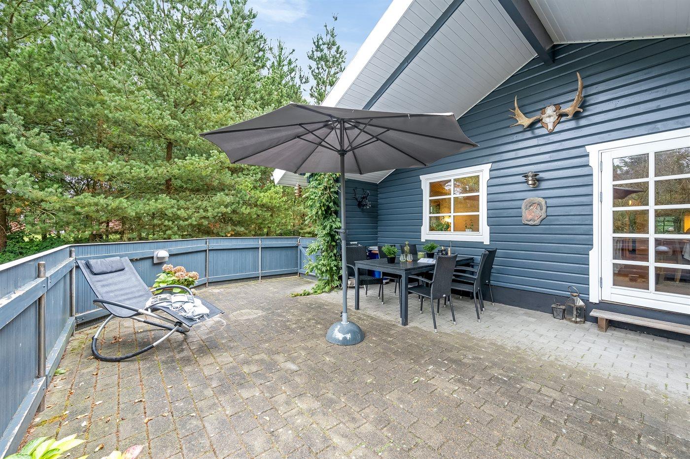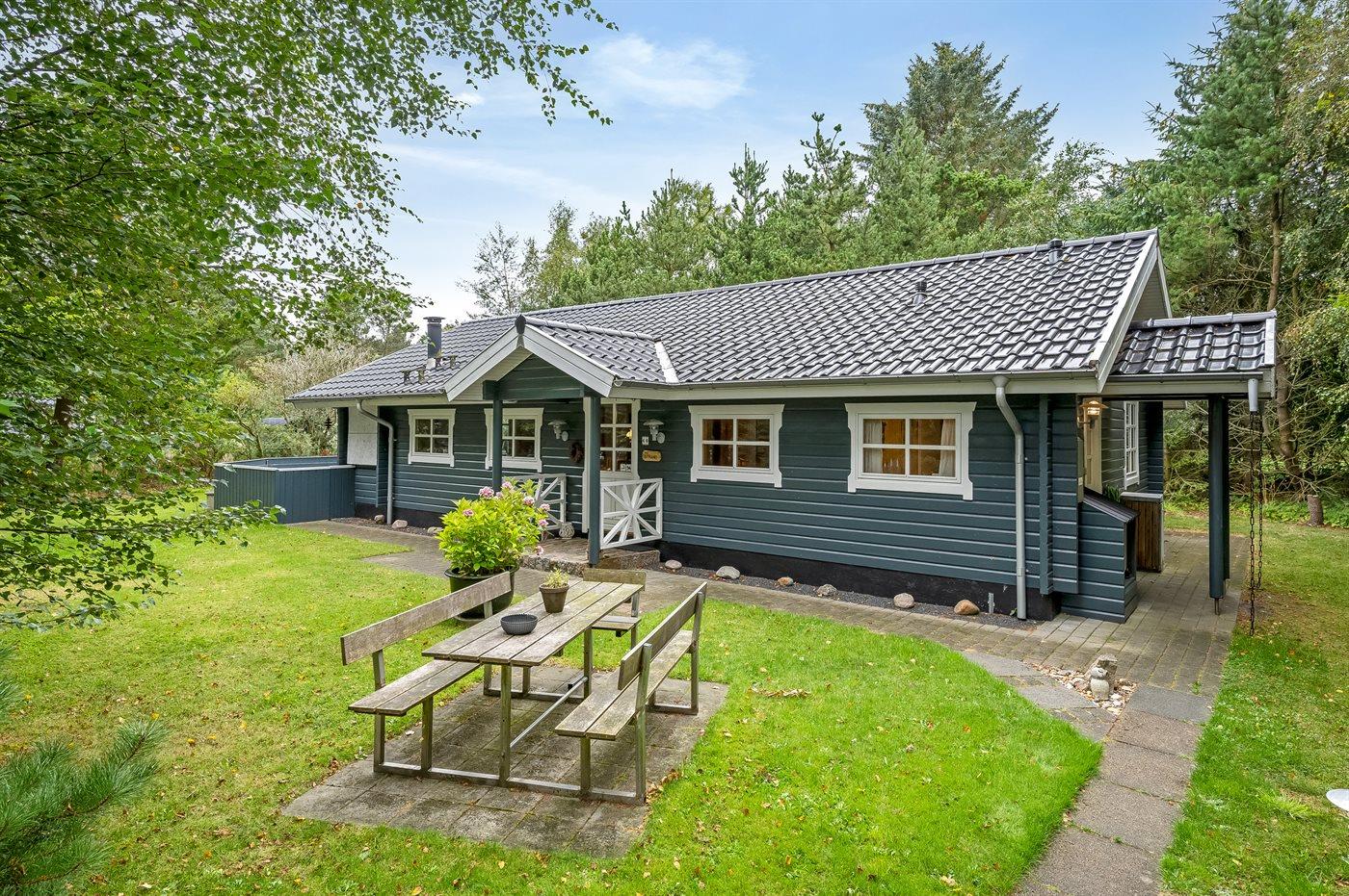 Ferieboligen er beliggende på en 1900 m² stor naturgrund. Nærmeste forretning er beliggende i en afstand af 800 m. Desuden er der overdækket terrasse. Grill til rådighed. Parkering ved ferieboligen.