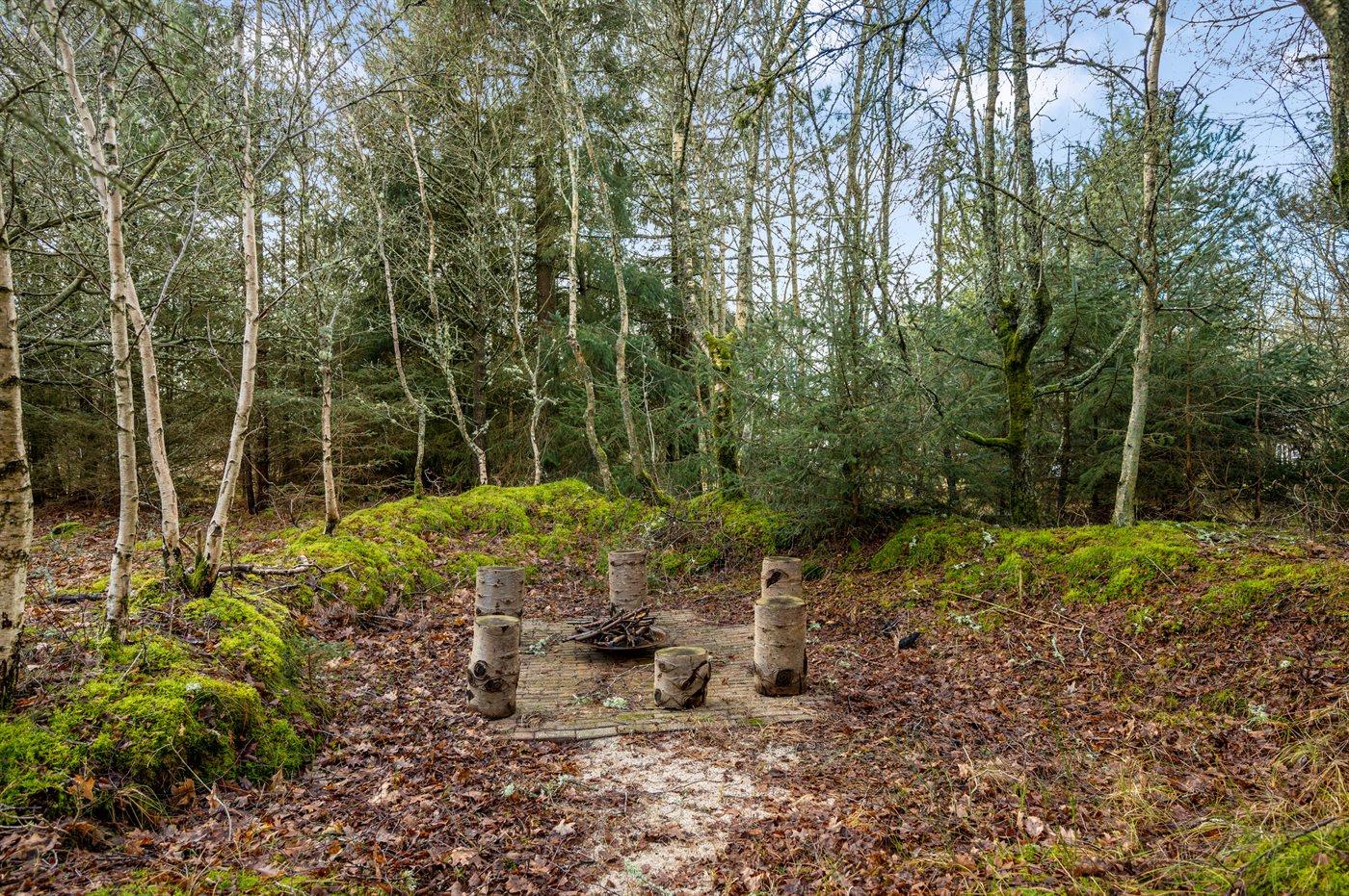 Ferieboligen er beliggende på en 3095 m² stor naturgrund. Der er 1900 m til havet. Nærmeste forretning er beliggende i en afstand af 1500 m. Til ferieboligen hører åbent terrasseareal. Desuden er der overdækket terrasse. Gynge. Sandkasse. Grill til rådighed. Parkering ved ferieboligen.