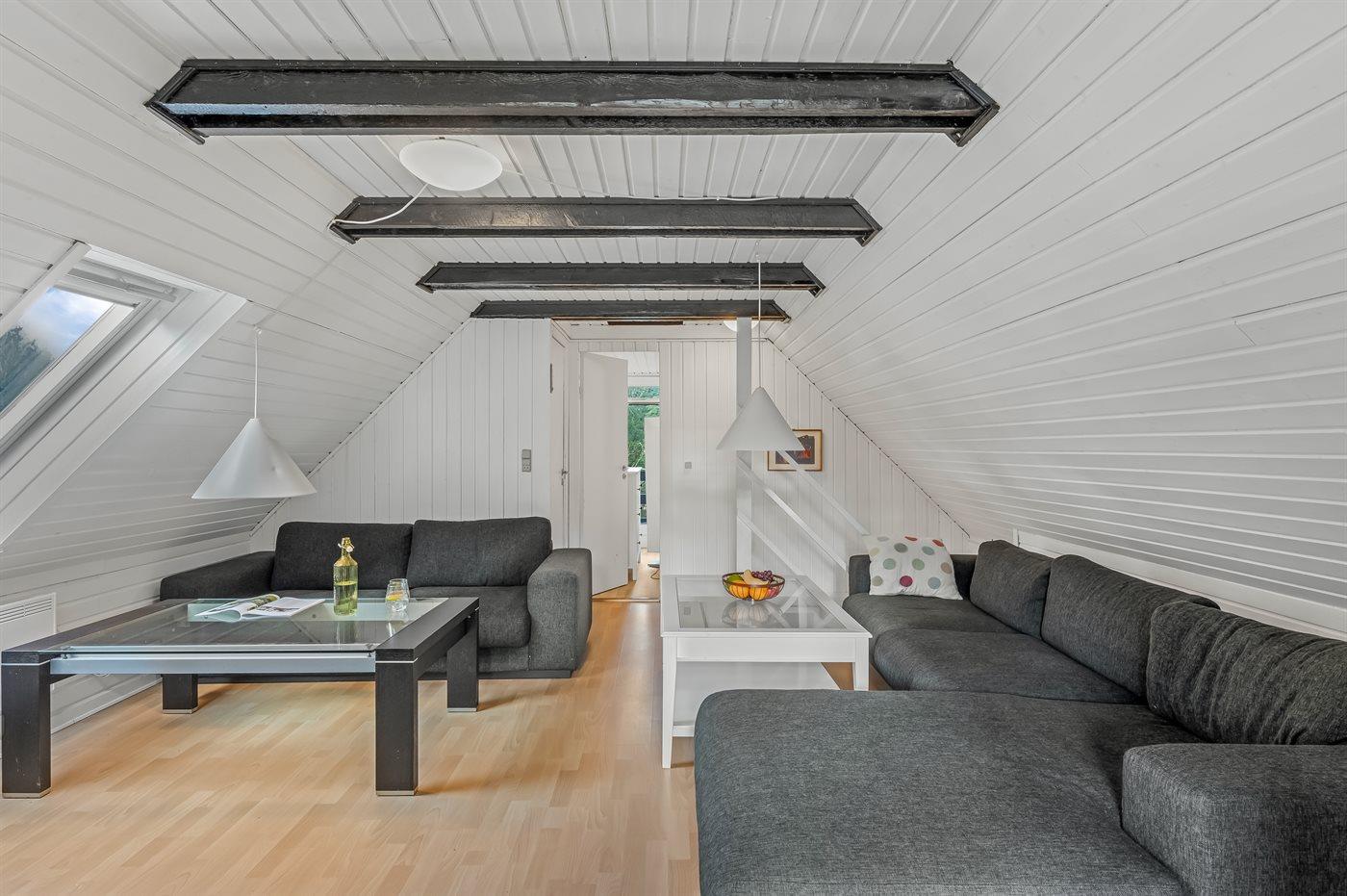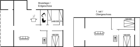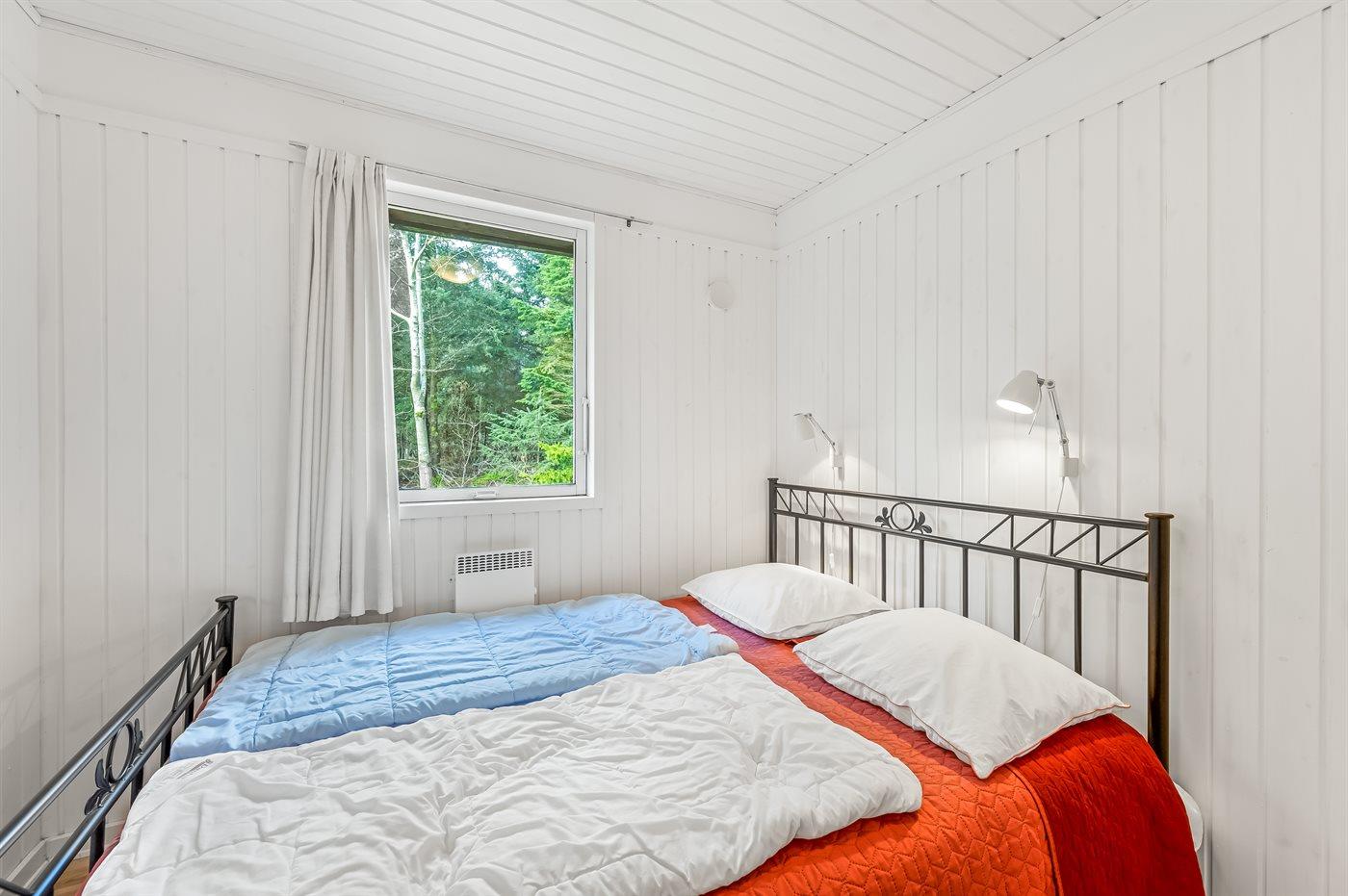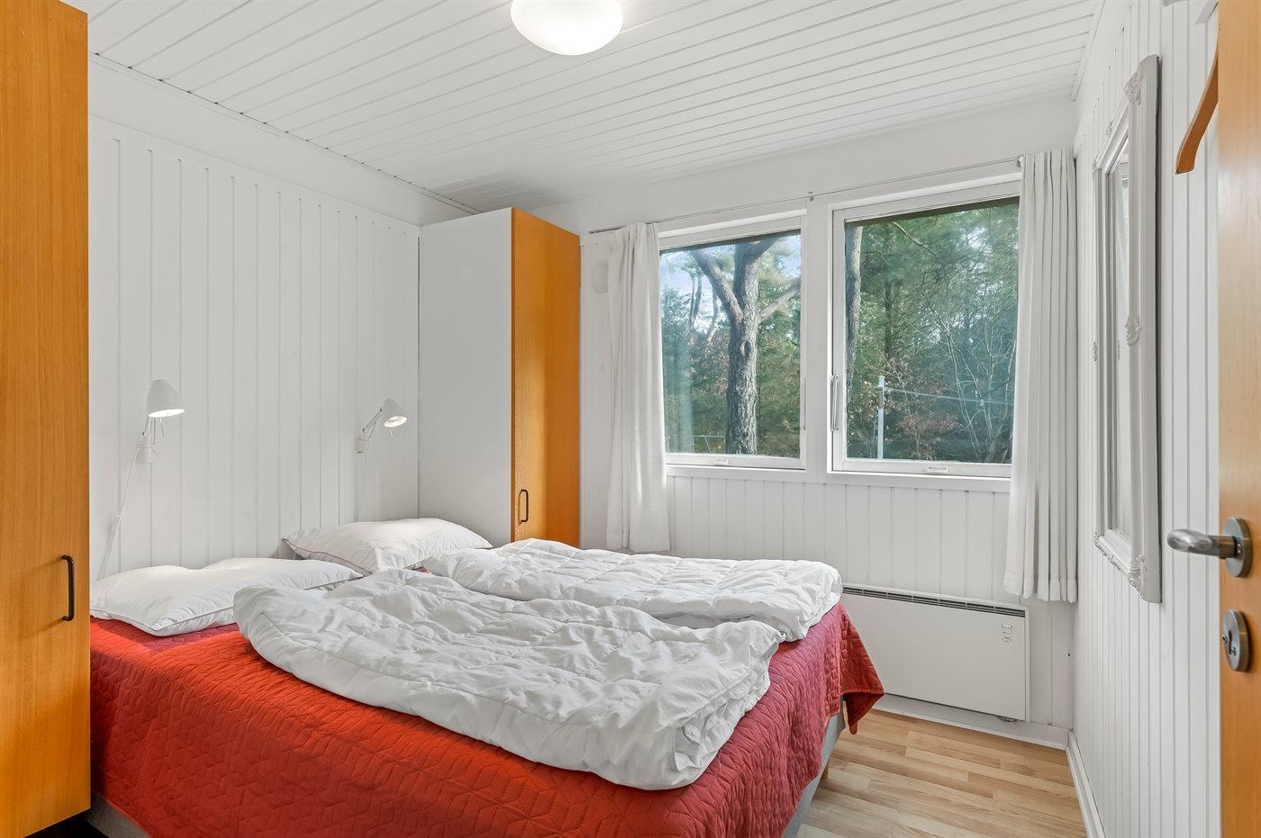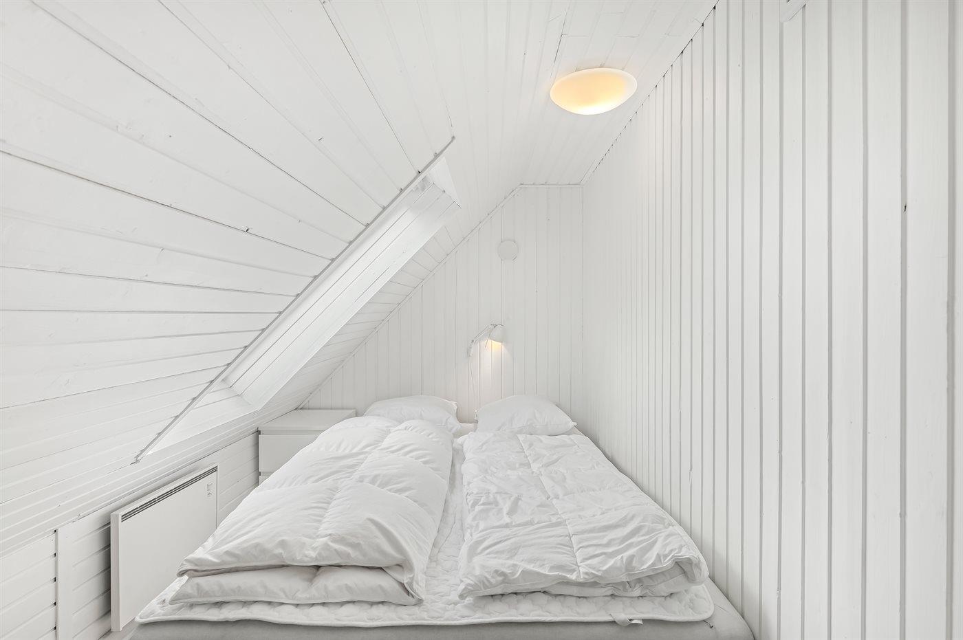 Der er i alt 4 soveværelser. Sovepladserne fordeler sig på: 6 sovepladser i dobbeltsenge. 2 sovepladser i enkeltsenge.