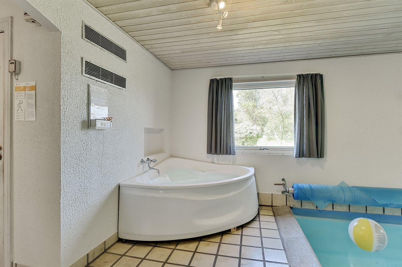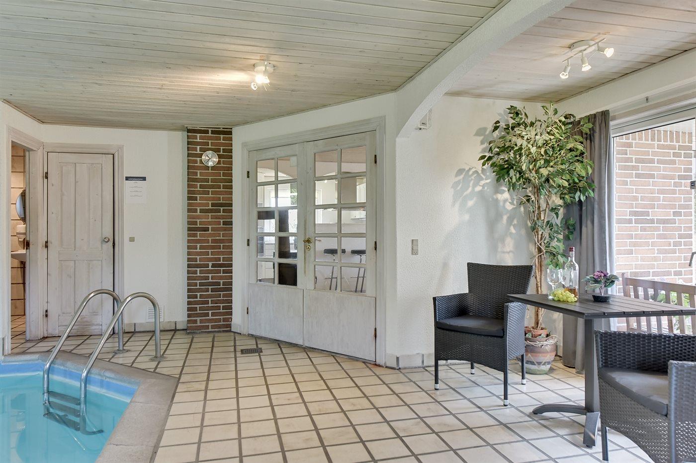 I den indendørs swimmingpool er der mulighed for leg og hyggeligt samvær. Swimmingpoolen måler op til 3 m i bredden, 6 m i længden og den er op til 1,3 m dyb. Vandet er mellem 24 og 28° C varmt. Der er gulvvarme i swimmingpoolområdet.