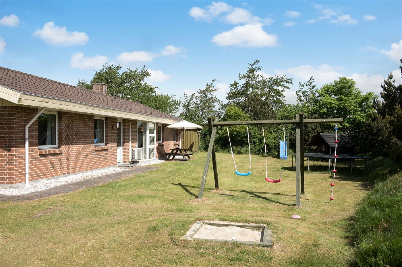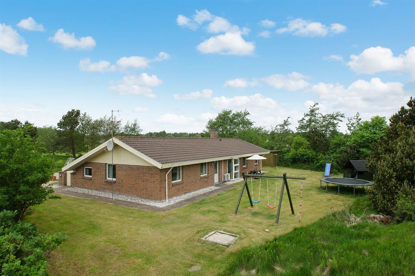 Dette dejlige og veludstyrede sommerhus er et attraktivt feriemål på alle årstider og velegnet for ophold til flere familier på samme tid. Huset er beliggende for enden af lukket sidevej, op til 18-hullers golfbane, på en dejlig grund med gode aktivitetsmuligheder for børn. Bemærk: trampolin og grill står kun til rådighed i perioden 1. april til 1. november.