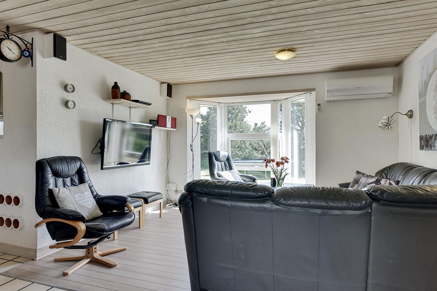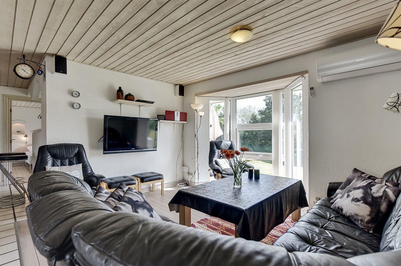 I ferieboligen er der 1 Smart-TV med Apple-TV-funktion. DVD-afspiller. Radio. Stereoanlæg med bluetooth-tilslutning til smartphone. CD-afspiller. Playstation 3. Der er mindst 4 danske kanaler. 1-3 svenske kanaler. 1-3 norske kanaler. Mindst 4 tyske kanaler. Der er trådløst internet til rådighed.