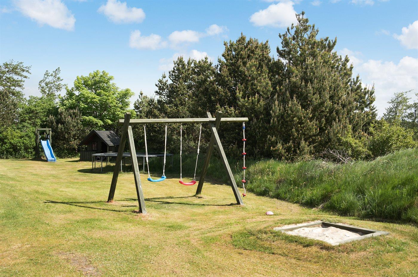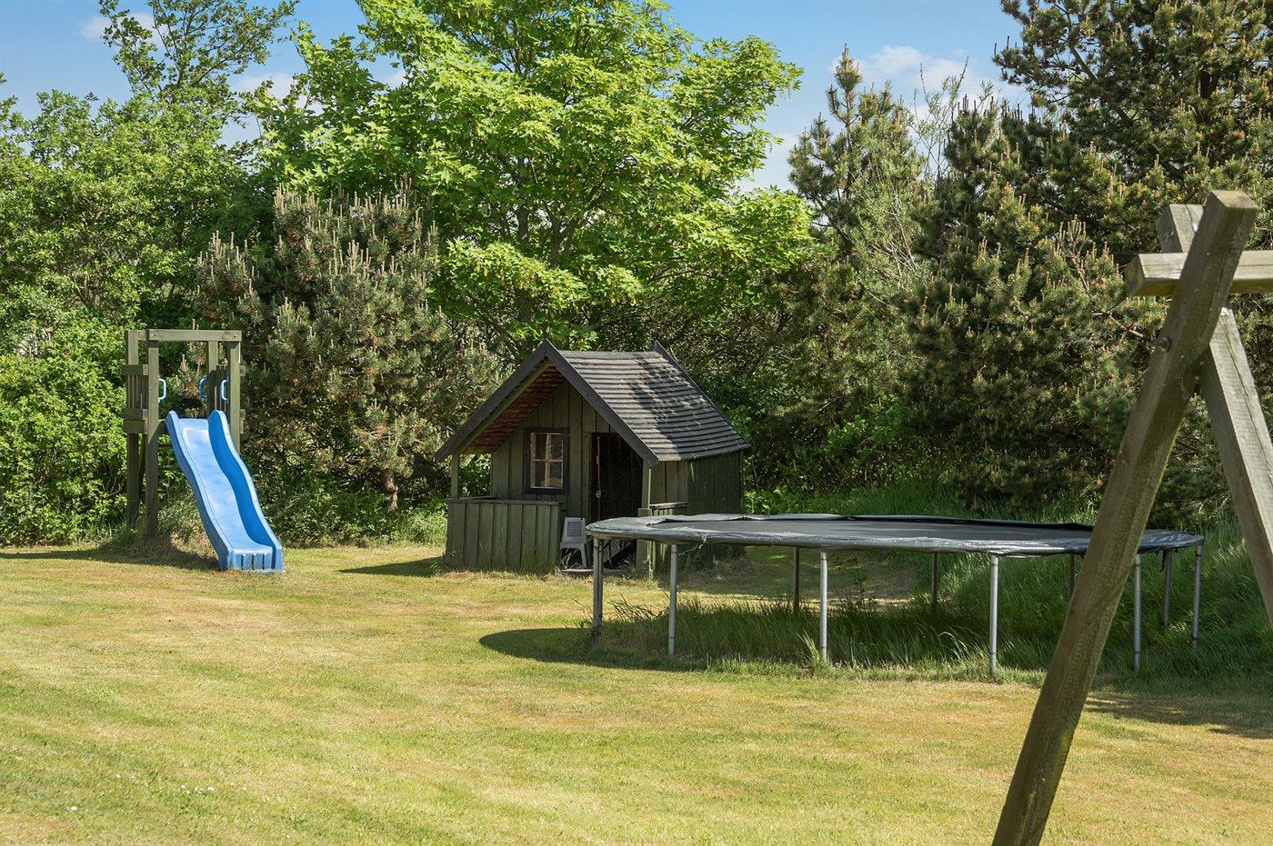 Ferieboligen er beliggende på en 1964 m² stor naturgrund. Der er 3500 m til havet. Der er 500 m til fjorden. Nærmeste forretning er beliggende i en afstand af 7500 m. Til ferieboligen hører 5 m² terrasseareal. Heraf i alt 38 m² lukket terrasse. Gynge. Sandkasse. Legehus. Legetårn. Rutchebane. Fodboldmål. Der er installeret stik til opladning af elbil. Med 11/22 kW ladeeffekt. Parkering ved ferieboligen.