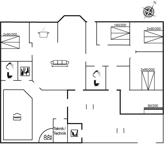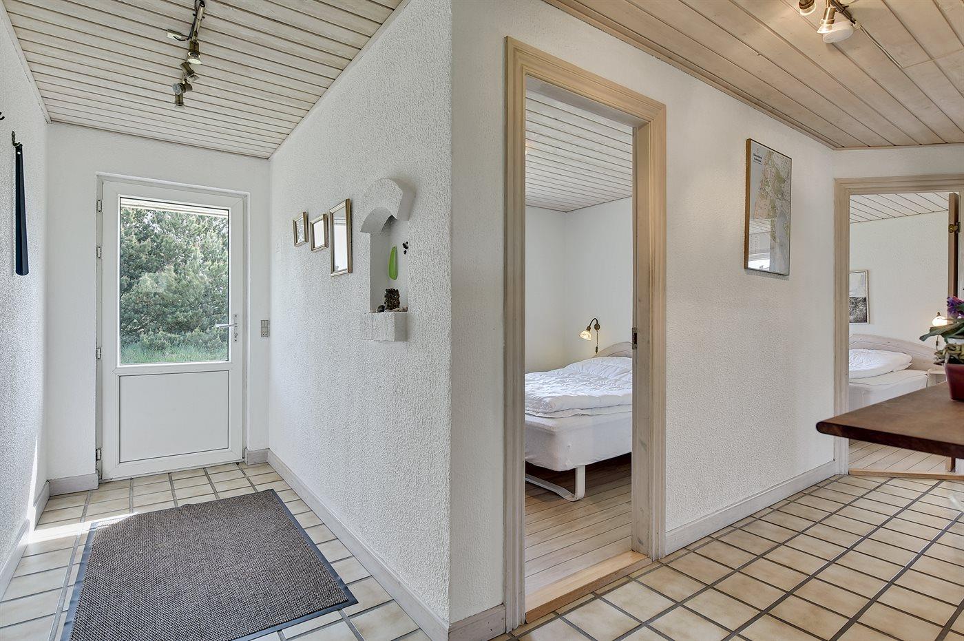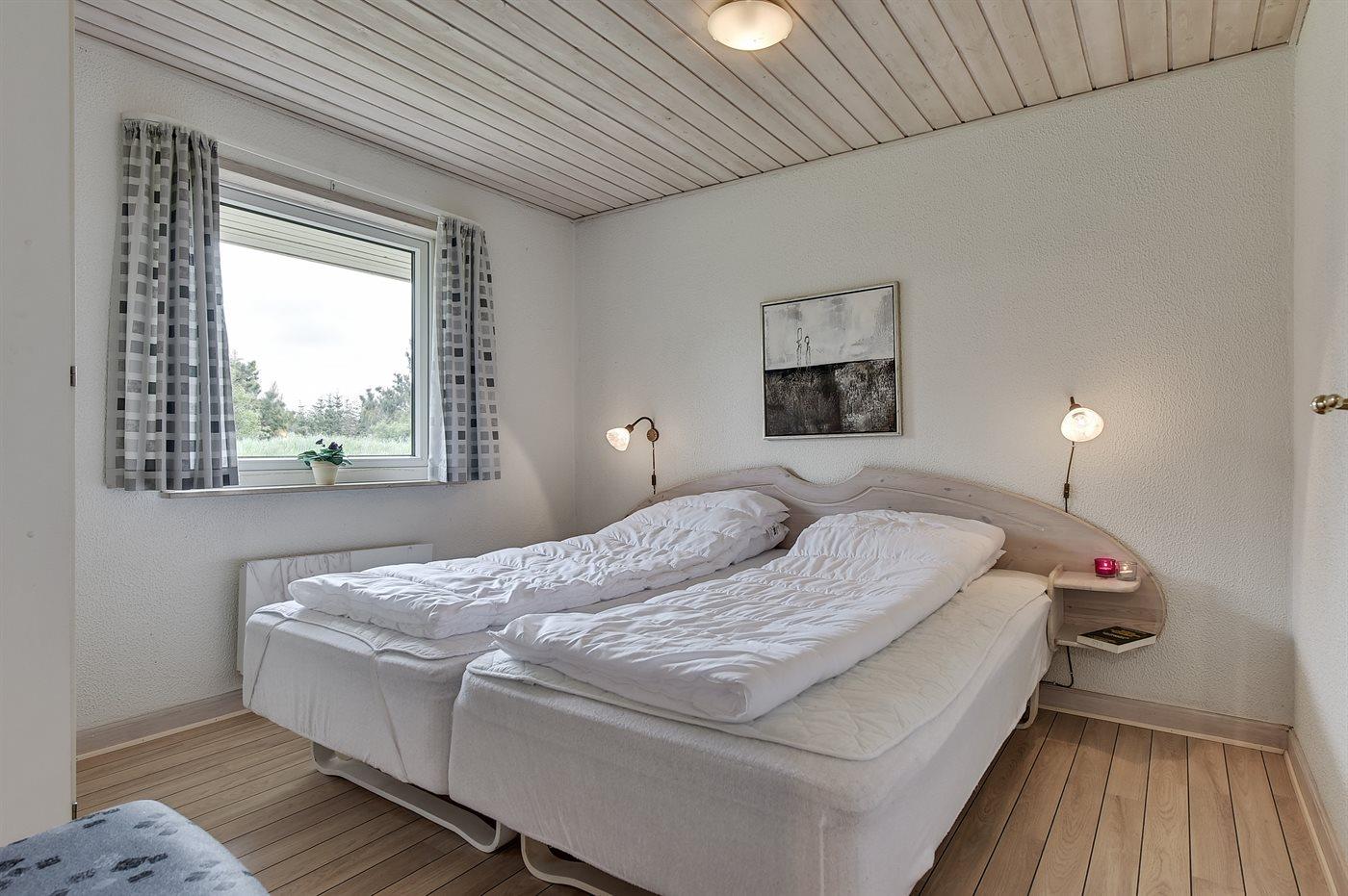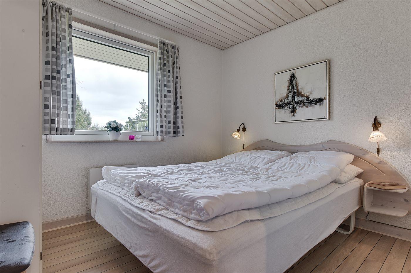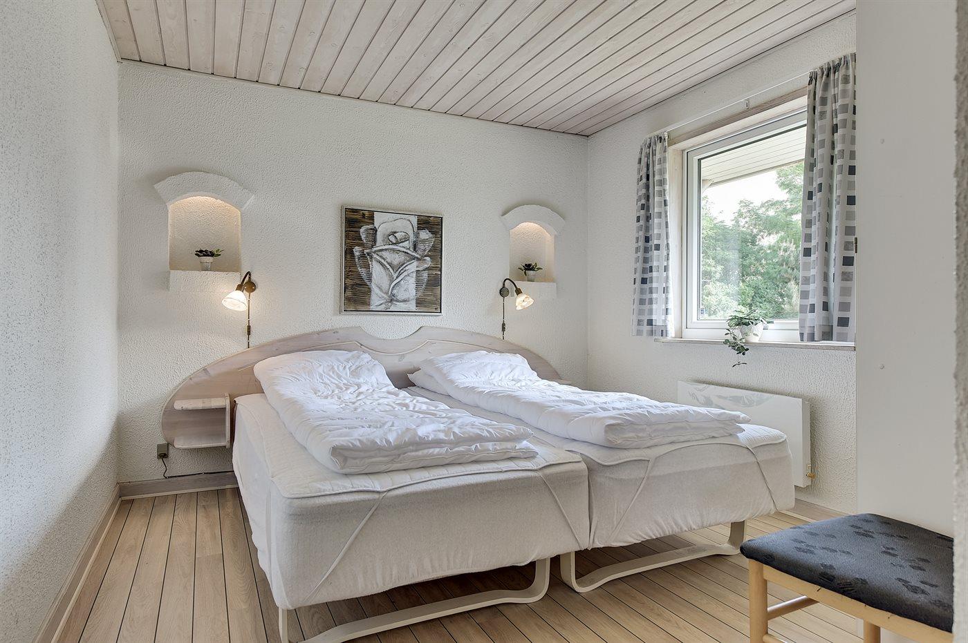Der er i alt 5 soveværelser. Sovepladserne fordeler sig på: 8 sovepladser i dobbeltsenge. 2 sovepladser i køjeseng. Derudover er der 1 stk. barneseng.