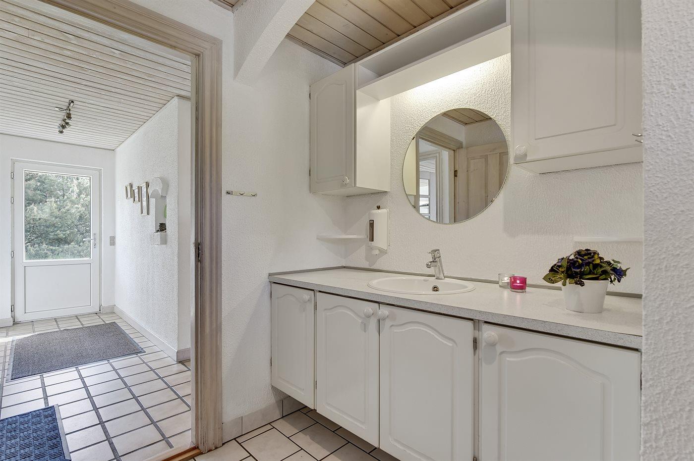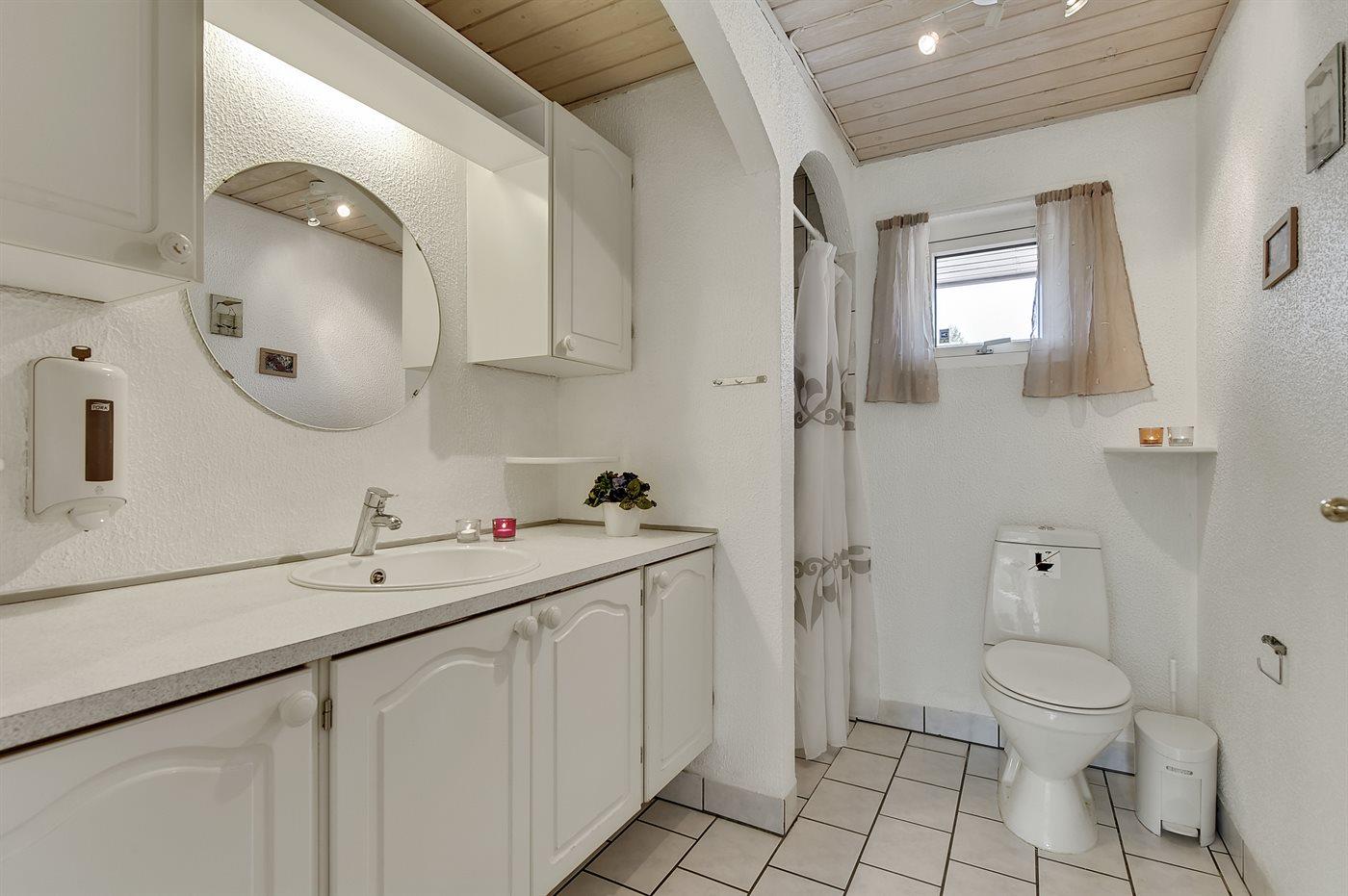 Der er 2 badeværelser med bruseniche og 2 toiletter. Der er gulvvarme på 2 badeværelser. Sensorstyret håndtørrer på det ene badeværelse I saunaen er der mulighed for afslapning.