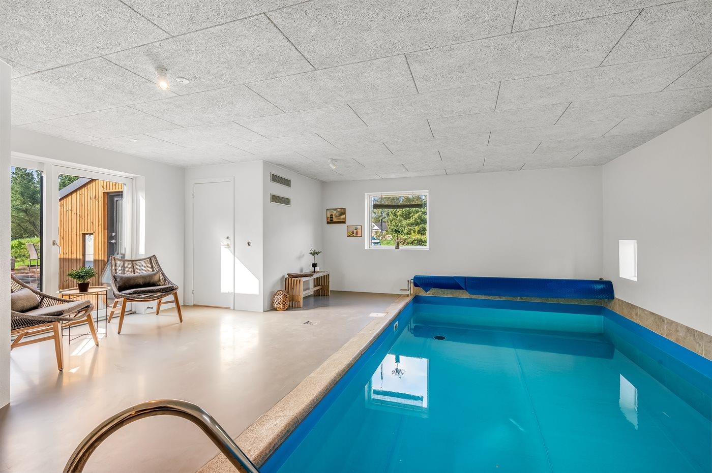 I den indendørs swimmingpool er der mulighed for leg og hyggeligt samvær. Swimmingpoolen måler op til 3 m i bredden, 6 m i længden og den er op til 1,3 m dyb. Vandet er mellem 24 og 28° C varmt. Der er gulvvarme i swimmingpoolområdet.