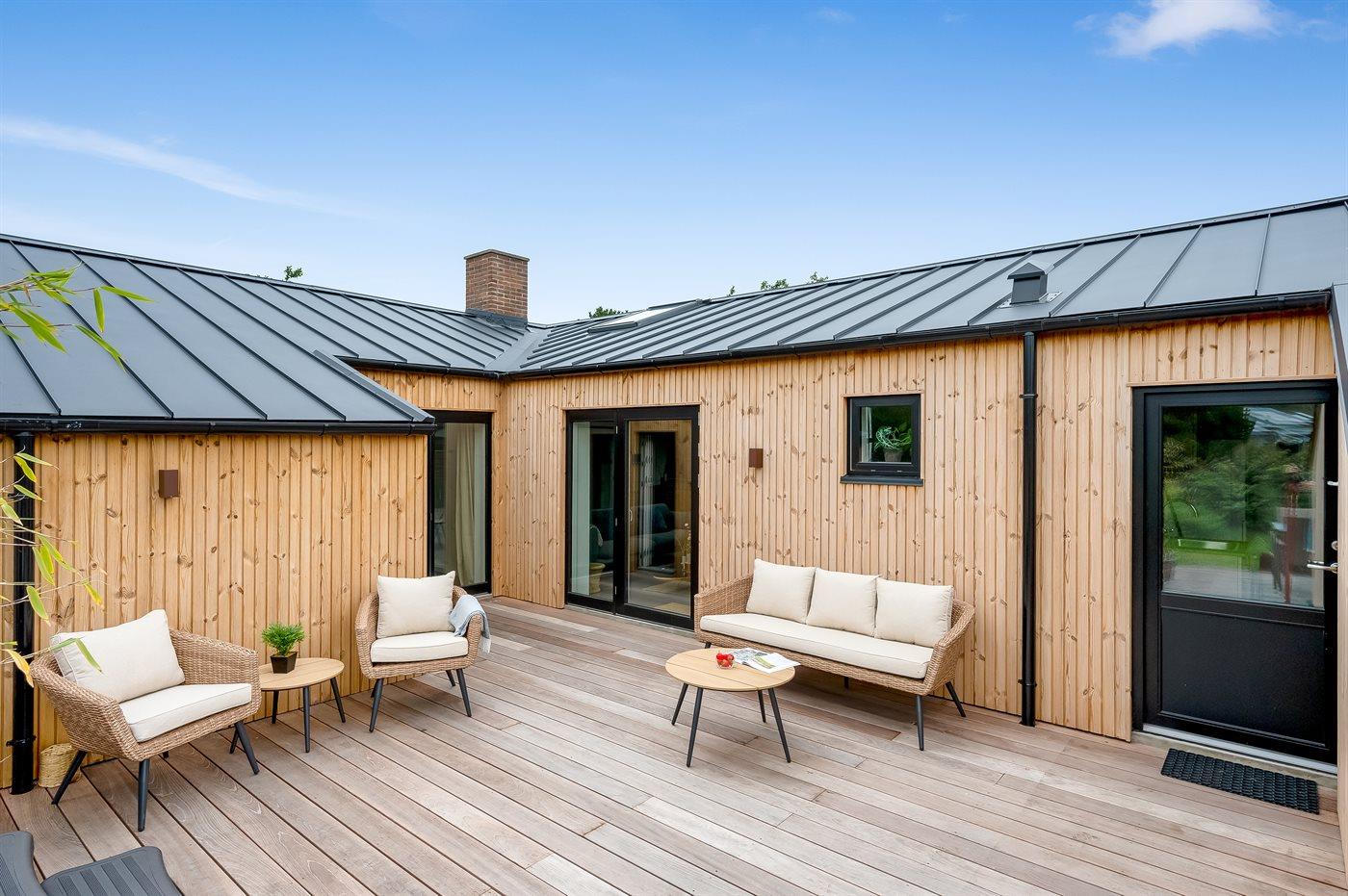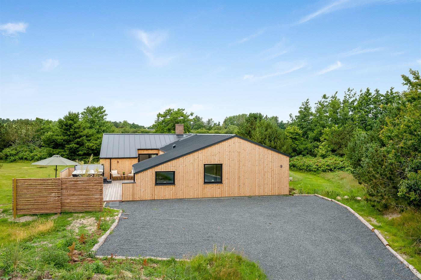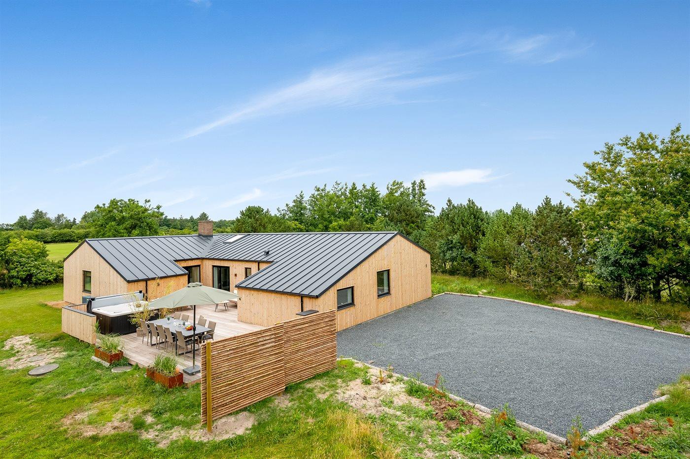 Eksklusivt poolsommerhus med sauna, spa og stor terrasse i rolige omgivelser nær Blåvand strand.