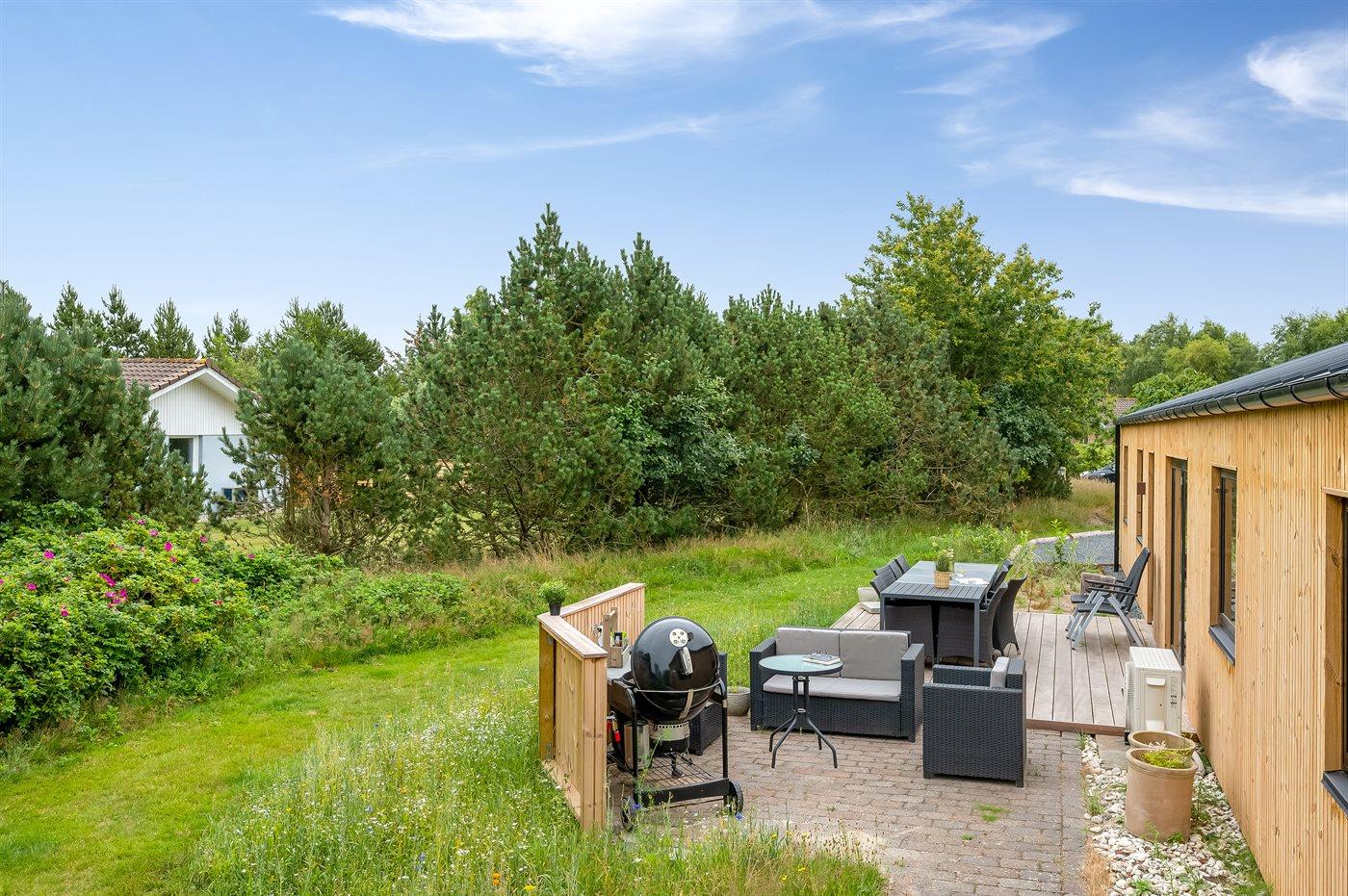 Ferieboligen er beliggende på en 1800 m² stor naturgrund. Der er 3000 m til havet. Der er 500 m til fjorden. Nærmeste forretning er beliggende i en afstand af 750 m. Der er en golfbane i en afstand af 500 m. Til ferieboligen hører 38 m² terrasseareal. Gynge. Sandkasse. Parkering ved ferieboligen.