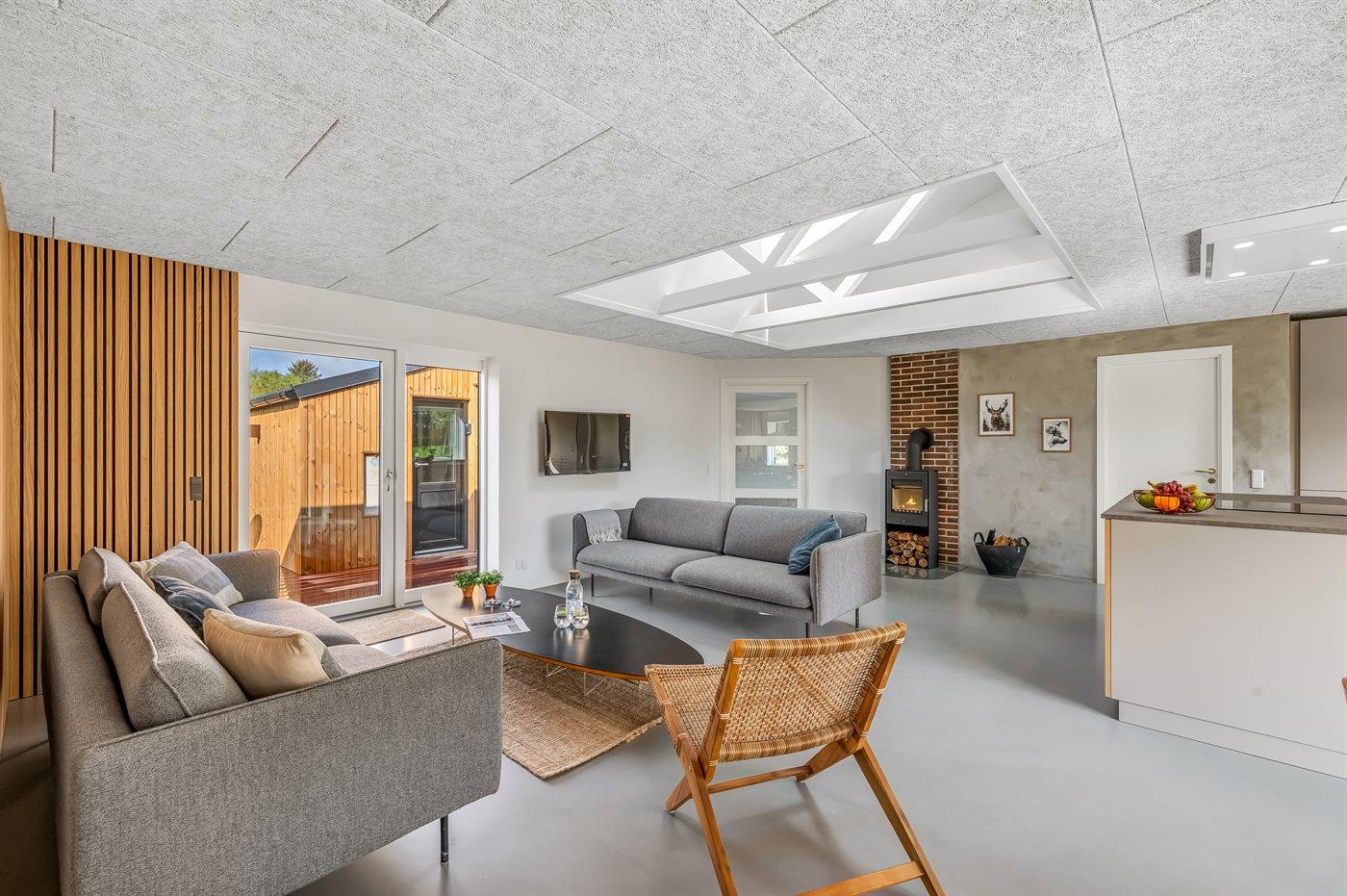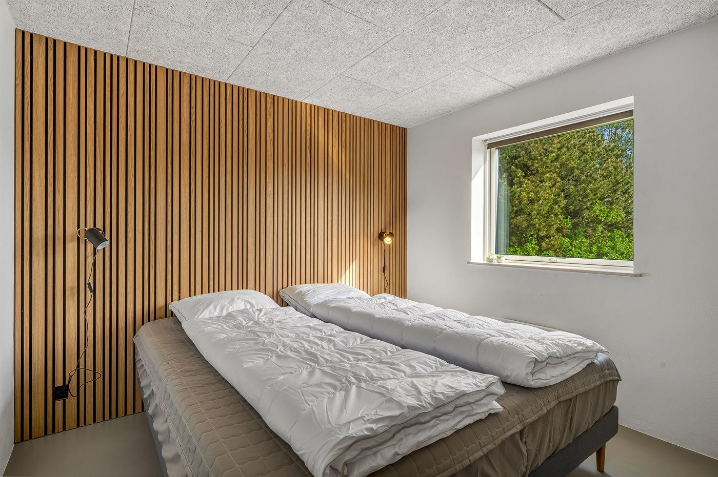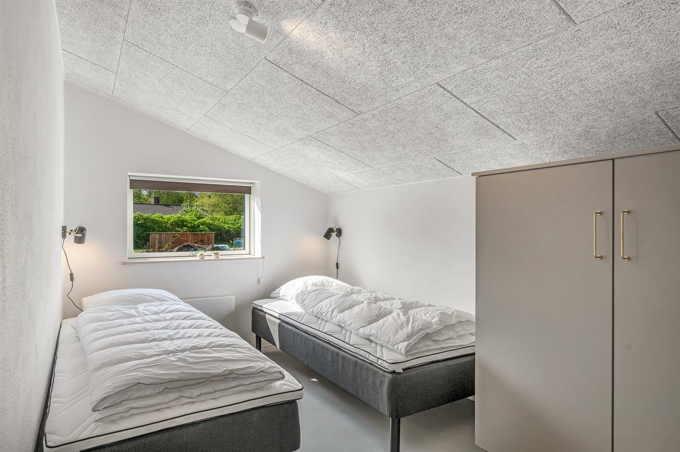 Der er i alt 5 soveværelser. Sovepladserne fordeler sig på: 8 sovepladser i dobbeltsenge. 2 sovepladser i enkeltsenge. Derudover er der 1 stk. barneseng.