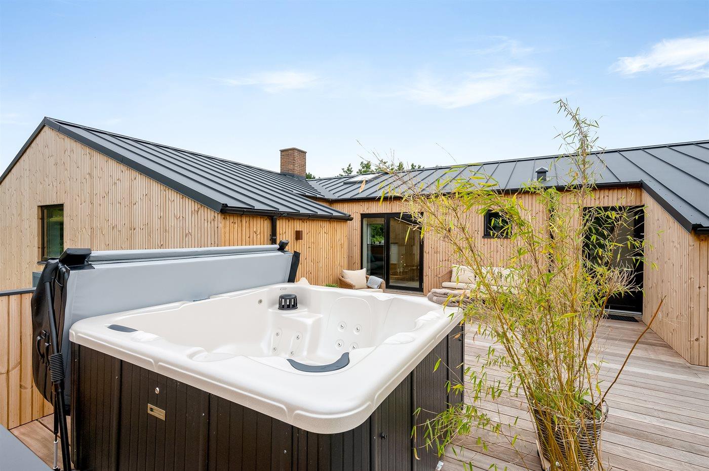 Der er mulighed for afslapning i udendørs standvandsspa til 6 personer.