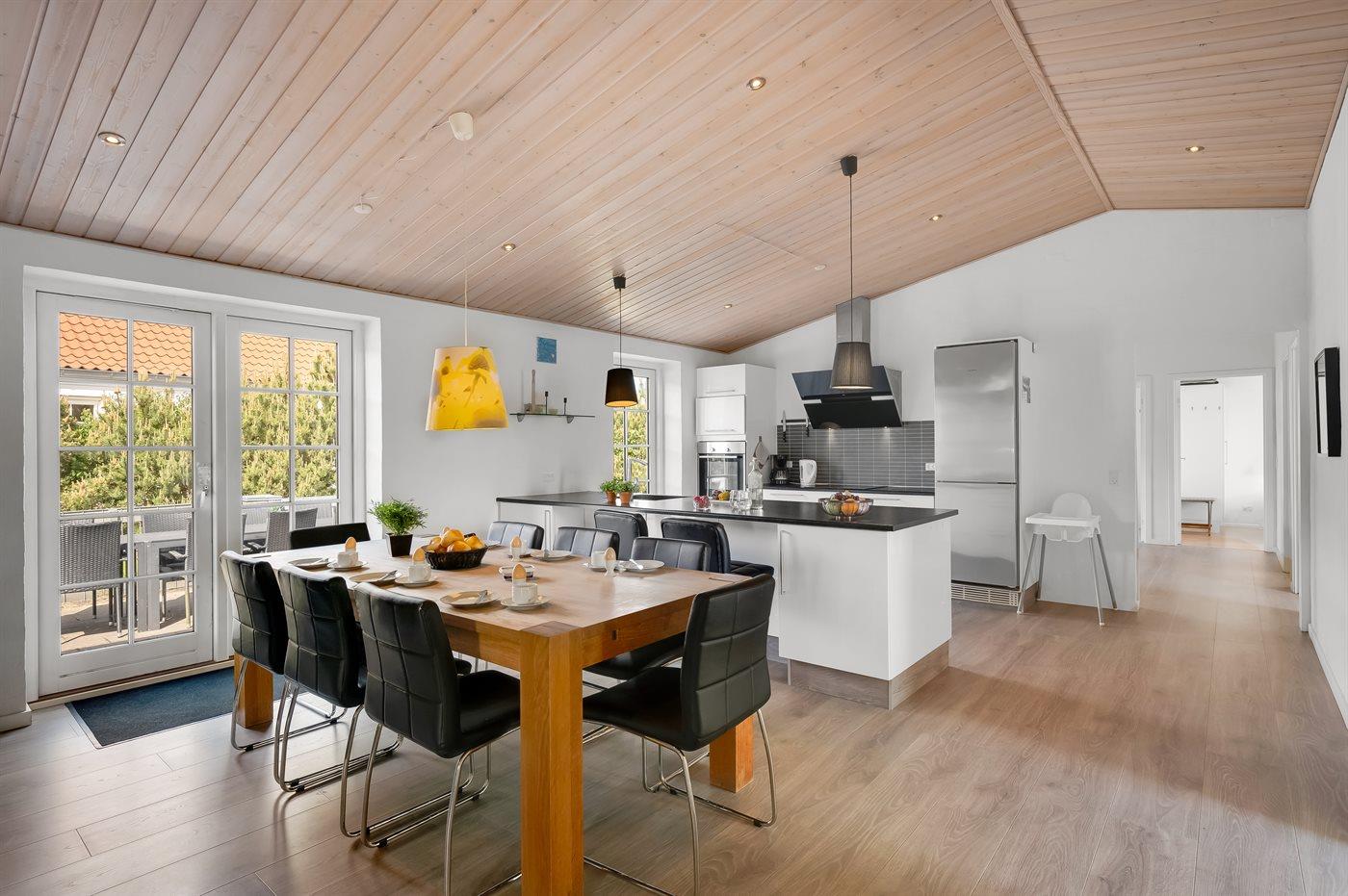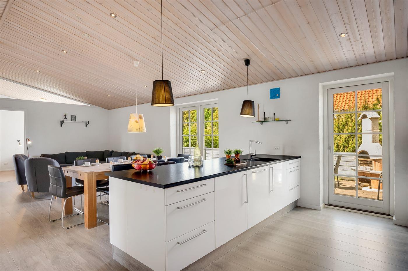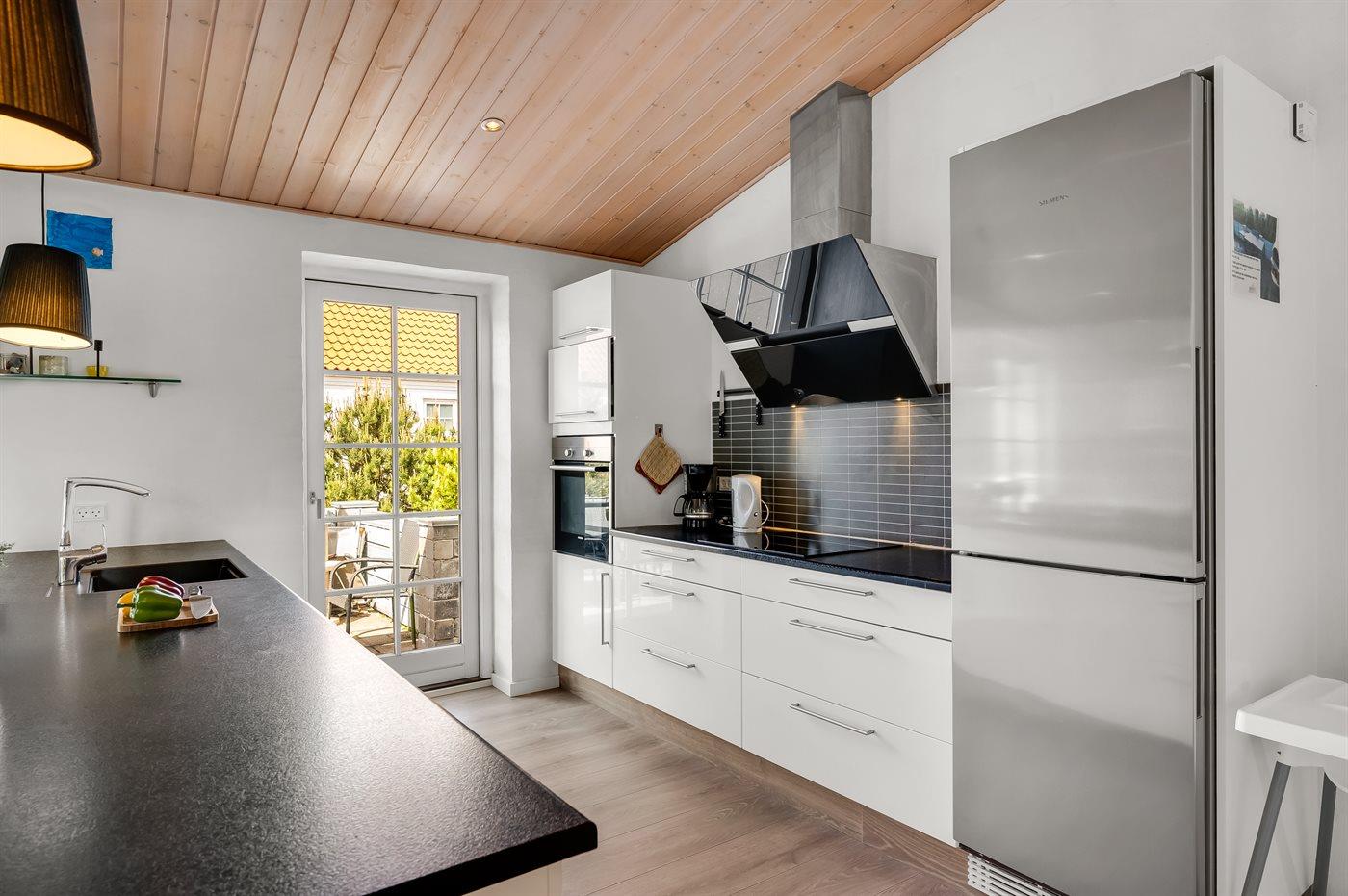 Køkkenet er udstyret med 1 køleskab. Der er 4 keramiske kogeplader, varmluftovn, mikrobølgeovn samt opvaskemaskine.
