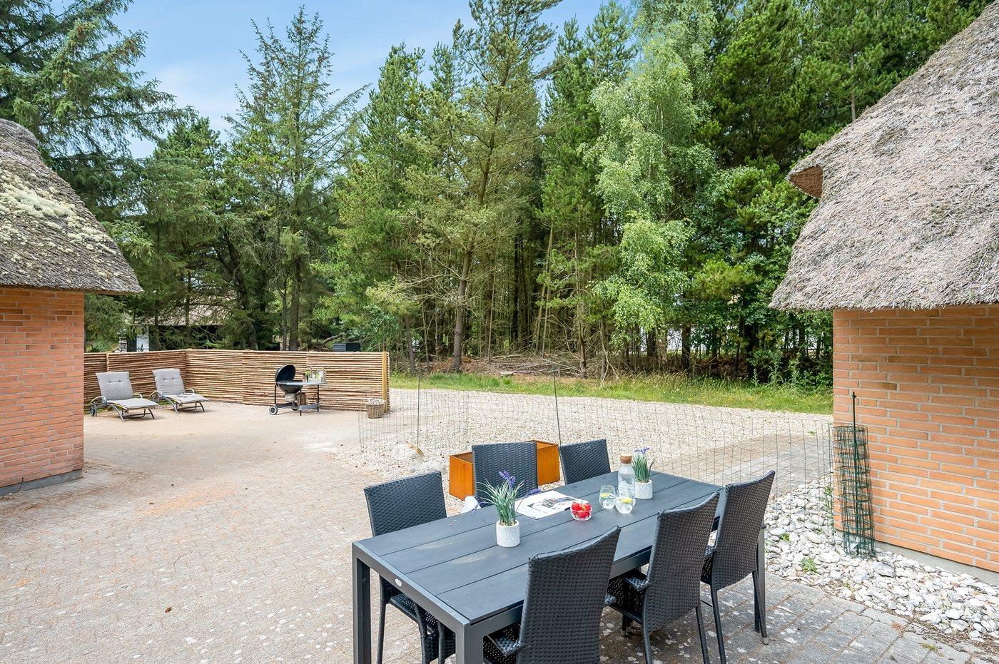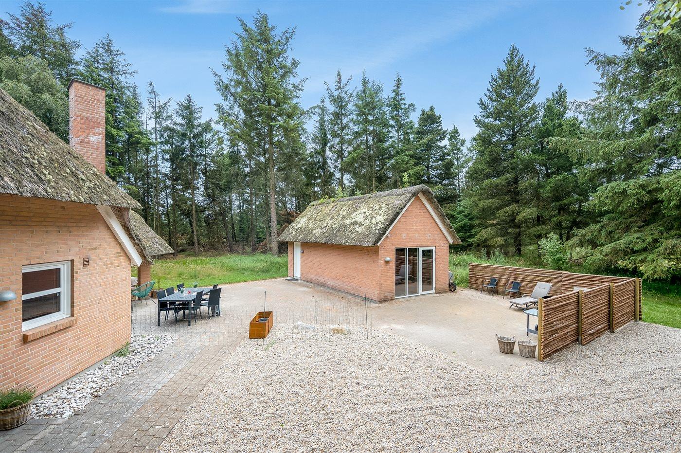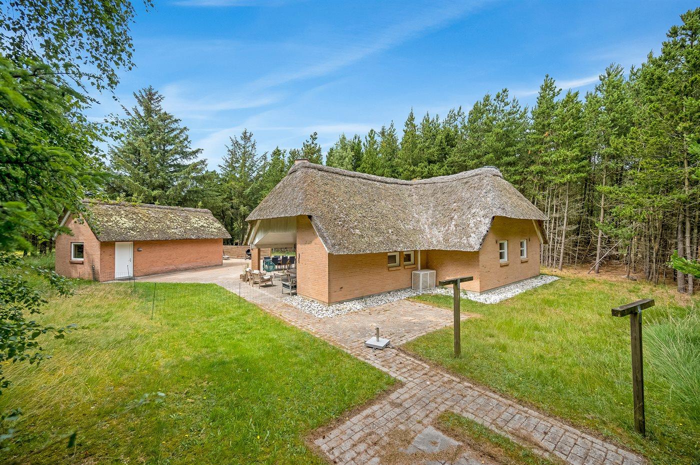 Ferieboligen er beliggende på en 3000 m² stor naturgrund. Der er 1700 m til havet. Nærmeste forretning er beliggende i en afstand af 2300 m. Der er en golfbane i en afstand af 3400 m. Til ferieboligen hører åbent terrasseareal. Desuden er der overdækket terrasse. Der er redskabsrum. Grill til rådighed. Der er installeret stik til opladning af elbil. Parkering ved ferieboligen.
