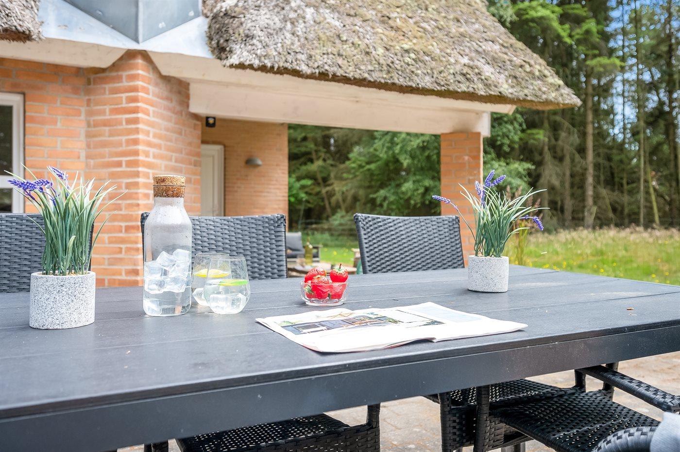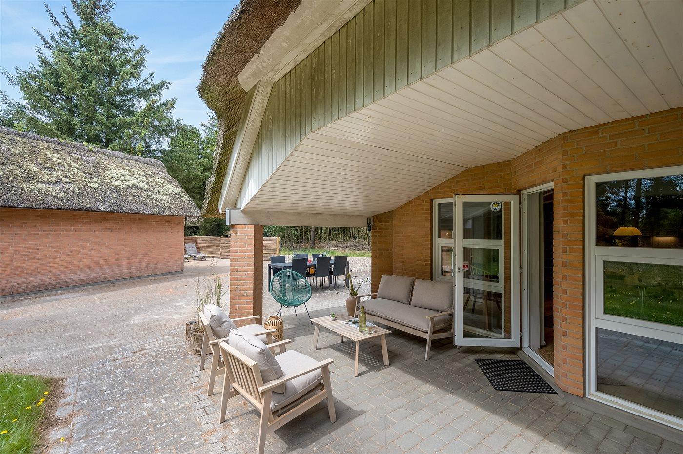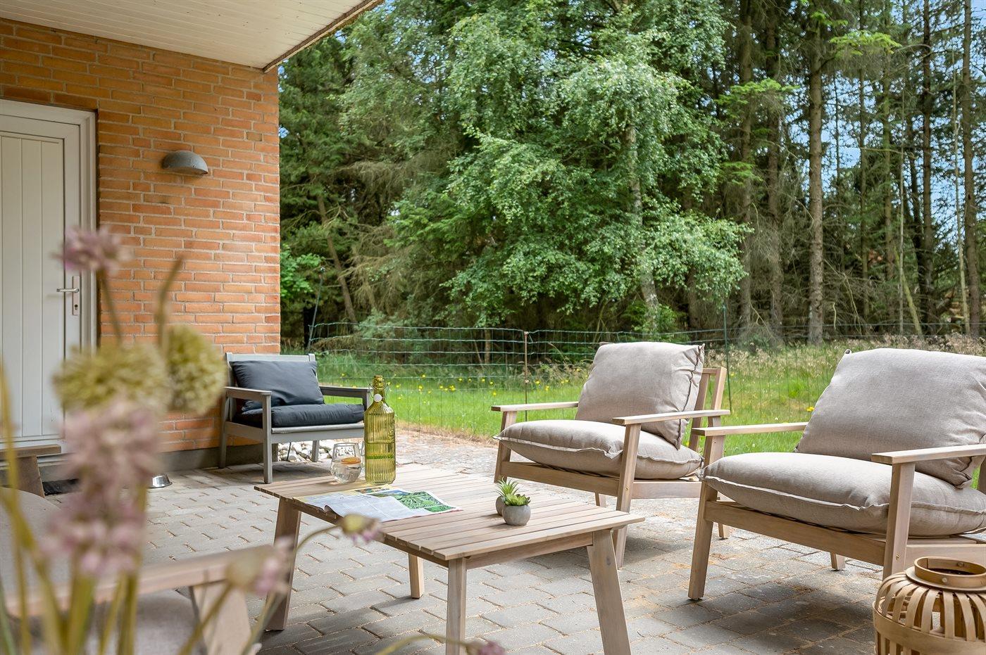 Ferieboligen er beliggende på en 3000 m² stor naturgrund. Der er 1700 m til havet. Nærmeste forretning er beliggende i en afstand af 2300 m. Der er en golfbane i en afstand af 3400 m. Til ferieboligen hører åbent terrasseareal. Desuden er der overdækket terrasse. Der er redskabsrum. Grill til rådighed. Der er installeret stik til opladning af elbil. Parkering ved ferieboligen.