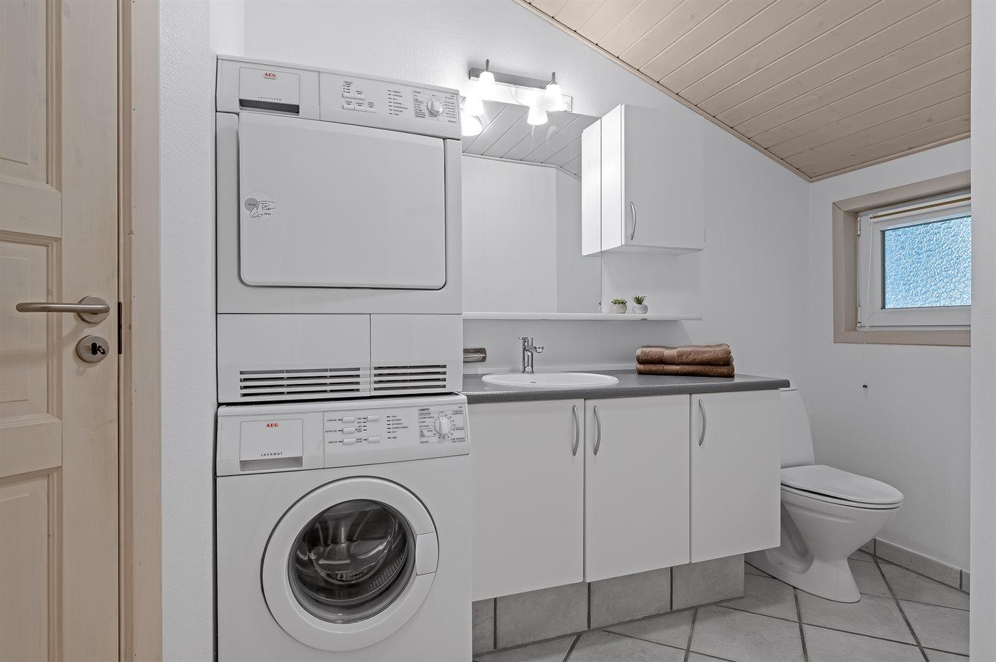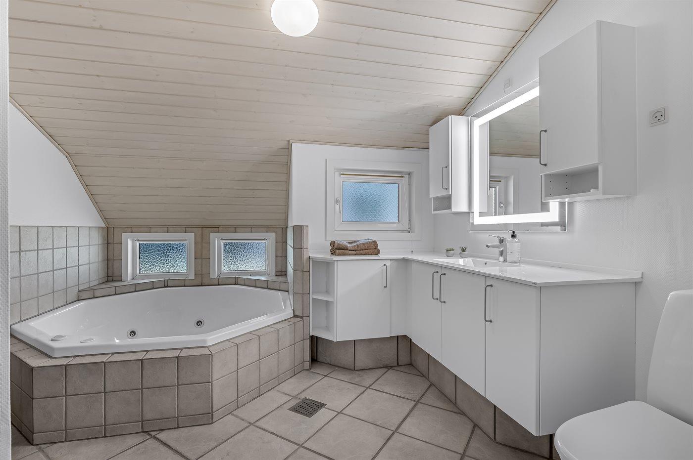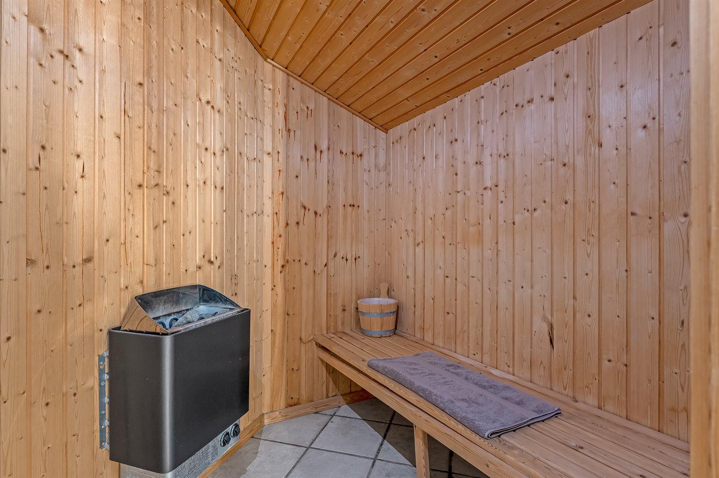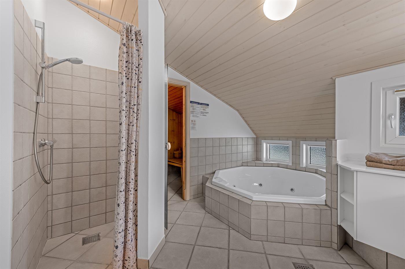Der er 2 badeværelser med bruseniche og 2 toiletter. Der er gulvvarme på 2 badeværelser. I saunaen er der mulighed for afslapning.