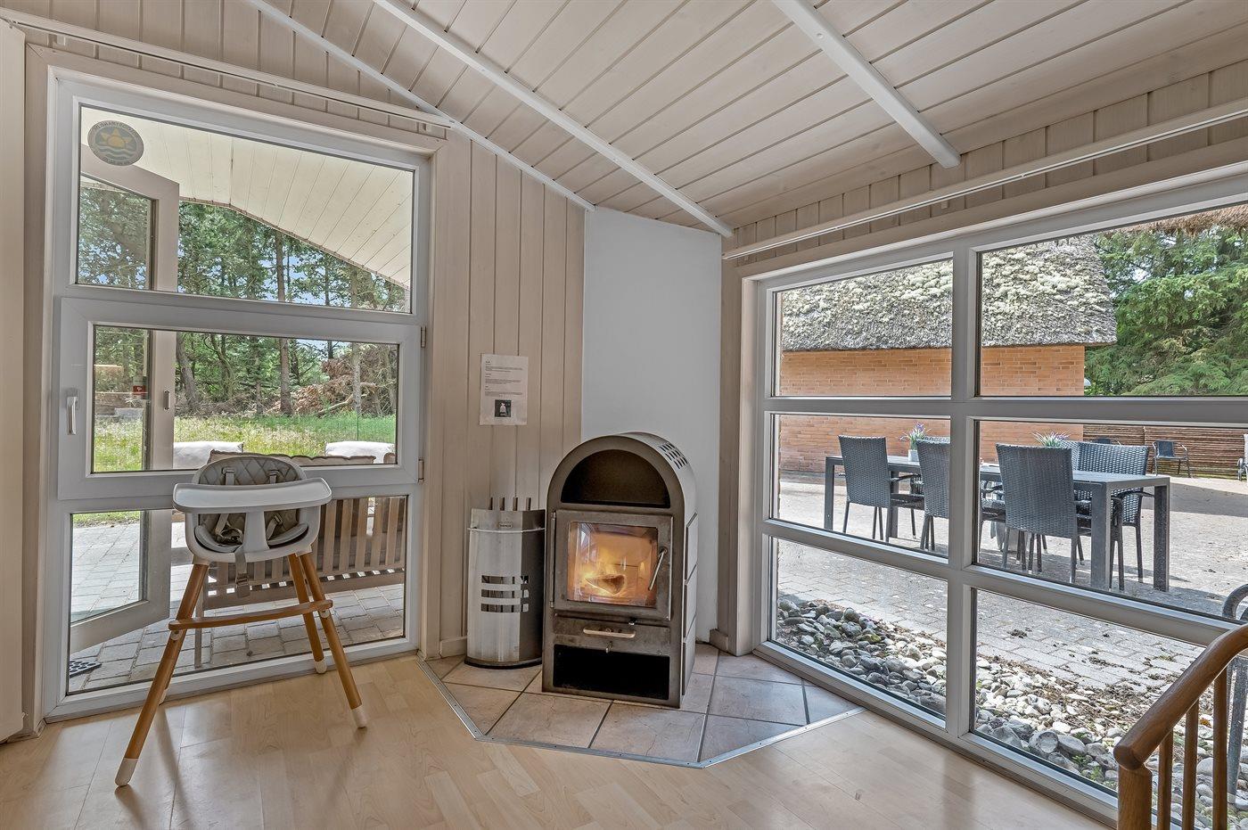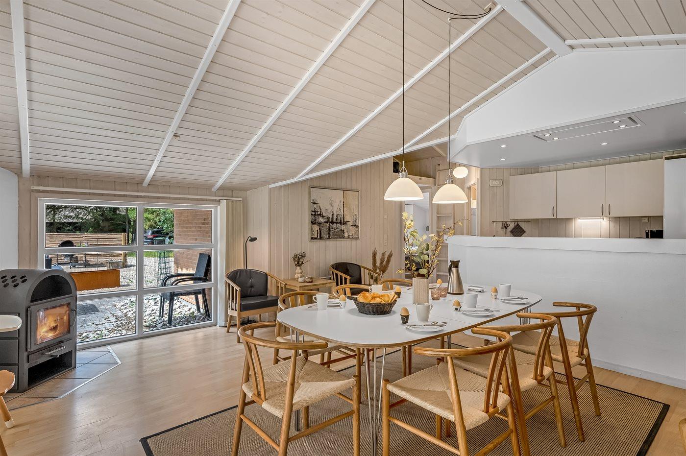 Husets store vinduer lukker lyset og naturen ind, hvilket giver en behagelig atmosfære hele året rundt.
