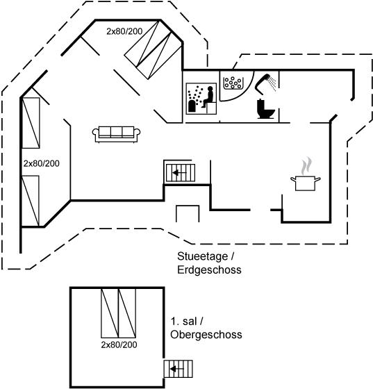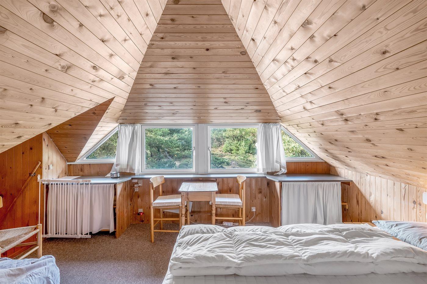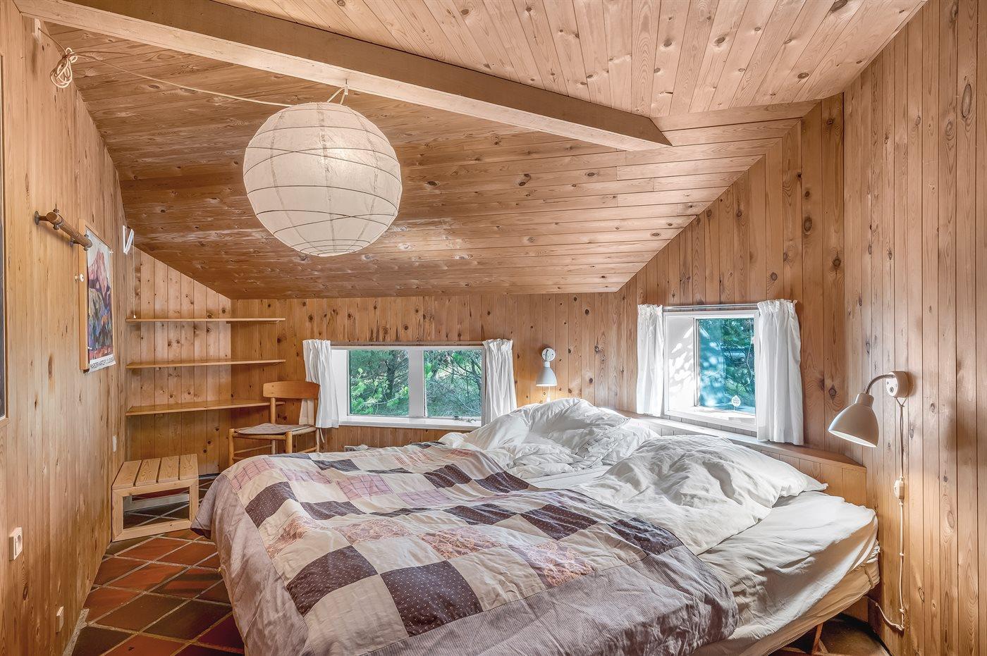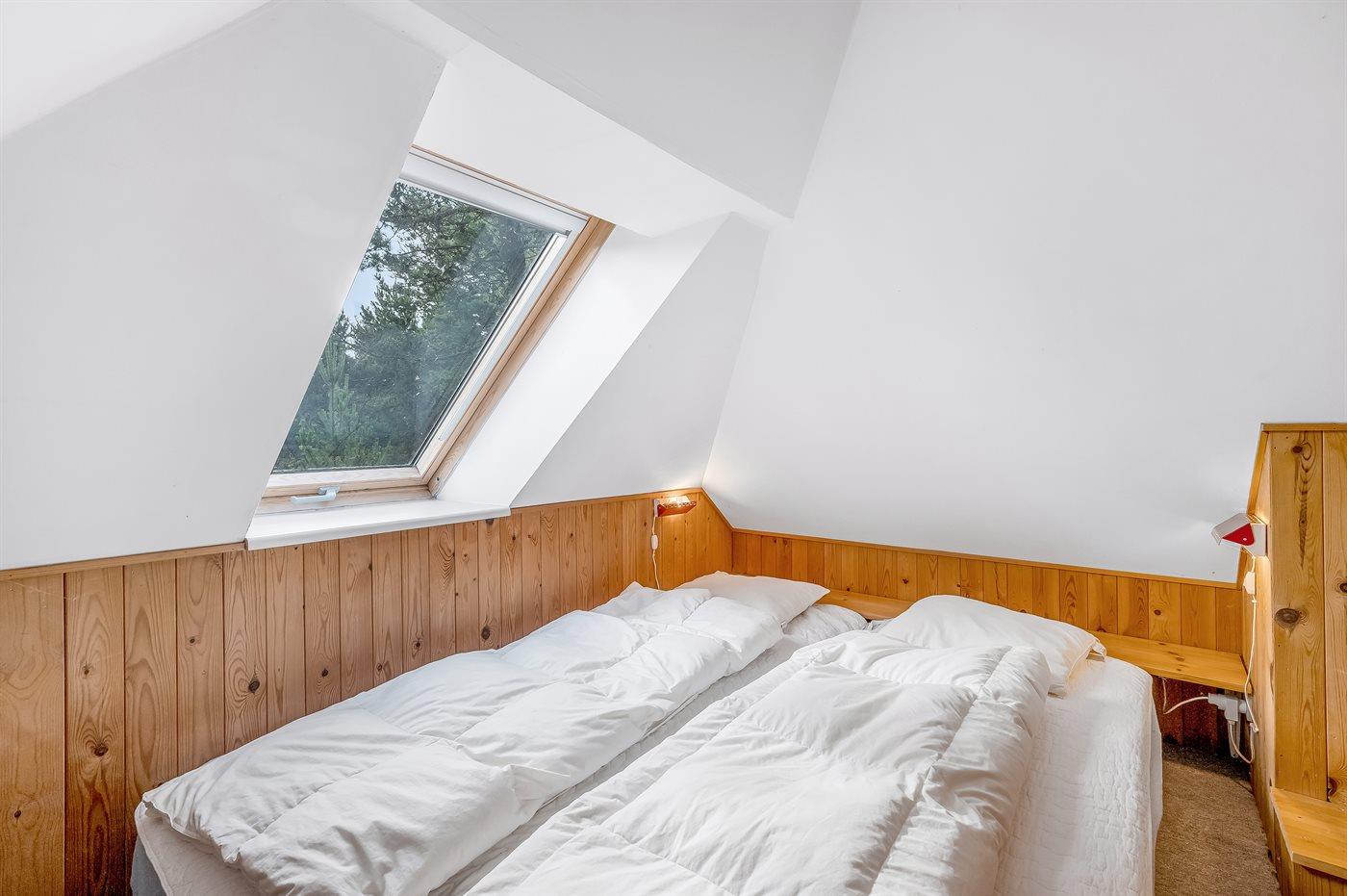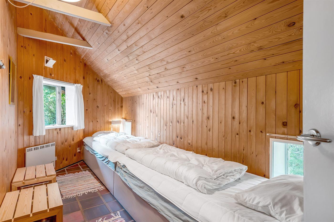 Der er i alt 3 soveværelser. Sovepladserne fordeler sig på: 6 sovepladser i dobbeltsenge. 2 sovepladser i enkeltsenge. 2 af disse sovepladser befinder sig på husets hems.