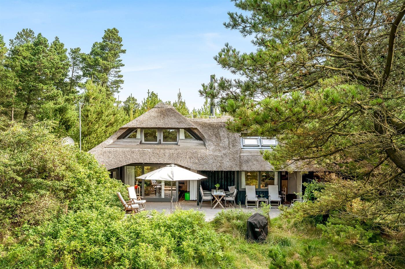 Hyggeligt sommerhus i Blåvand med spa, sauna og stor naturgrund tæt på havet.