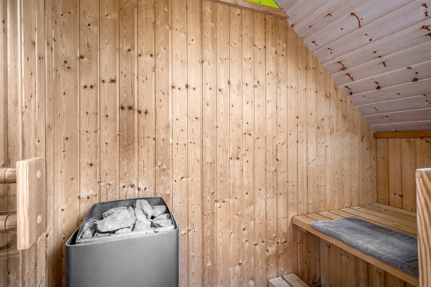 Der er 1 badeværelse med bruseniche og 1 toilet.. Der er gulvvarme på 1 badeværelse. I saunaen er der mulighed for afslapning.