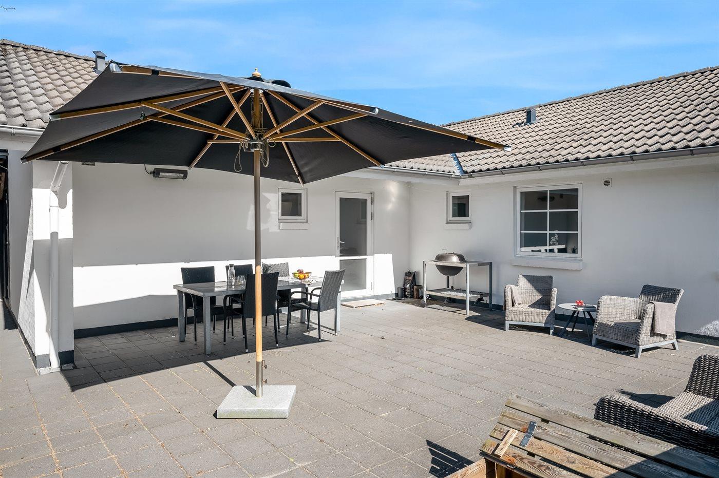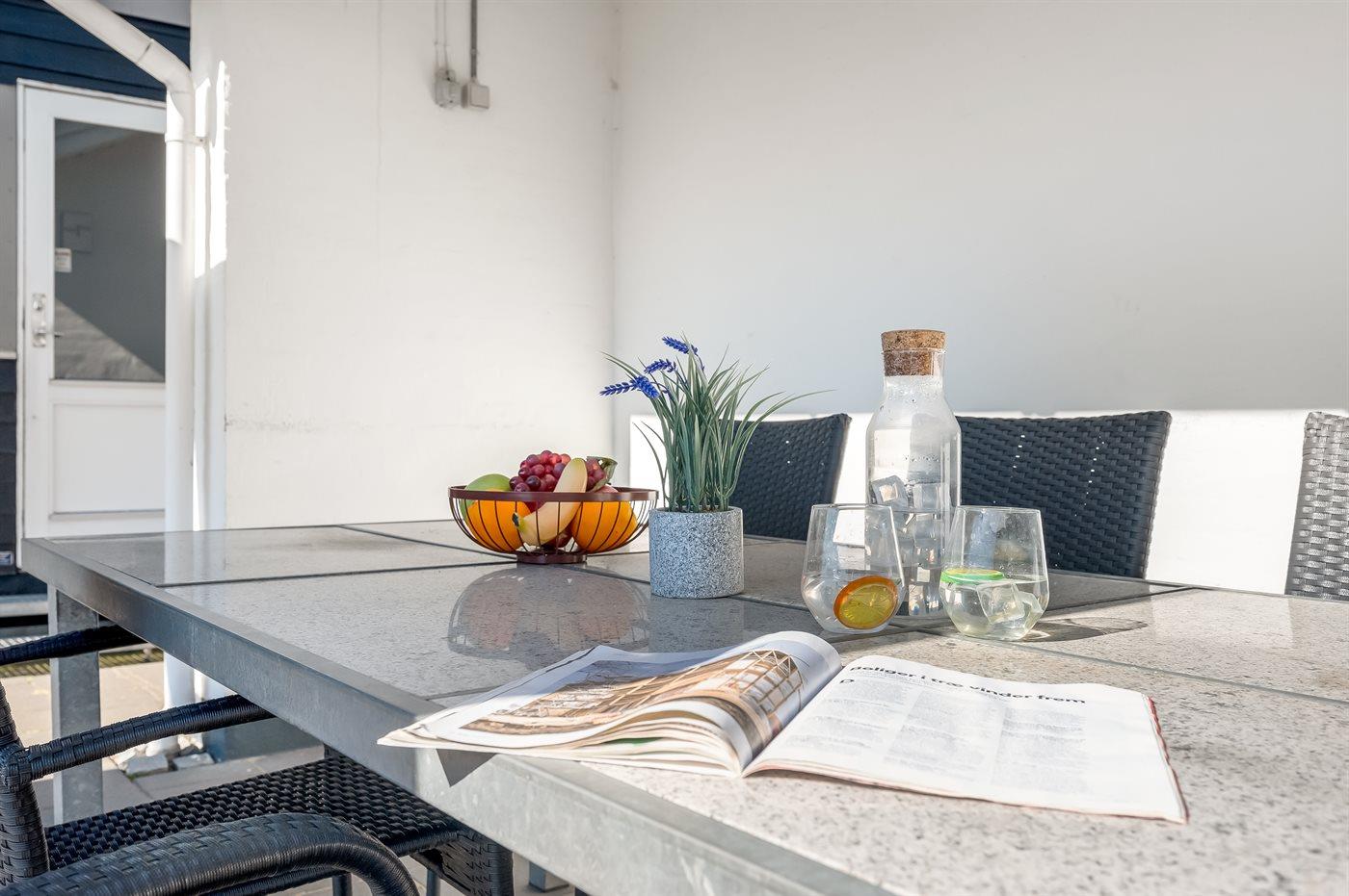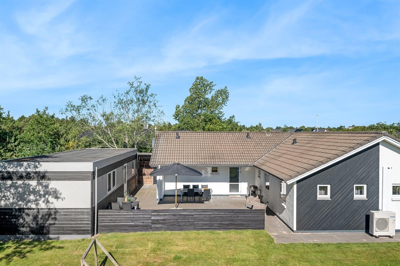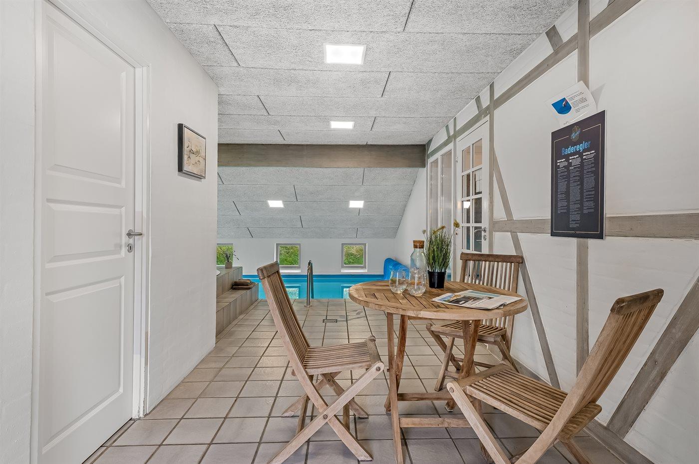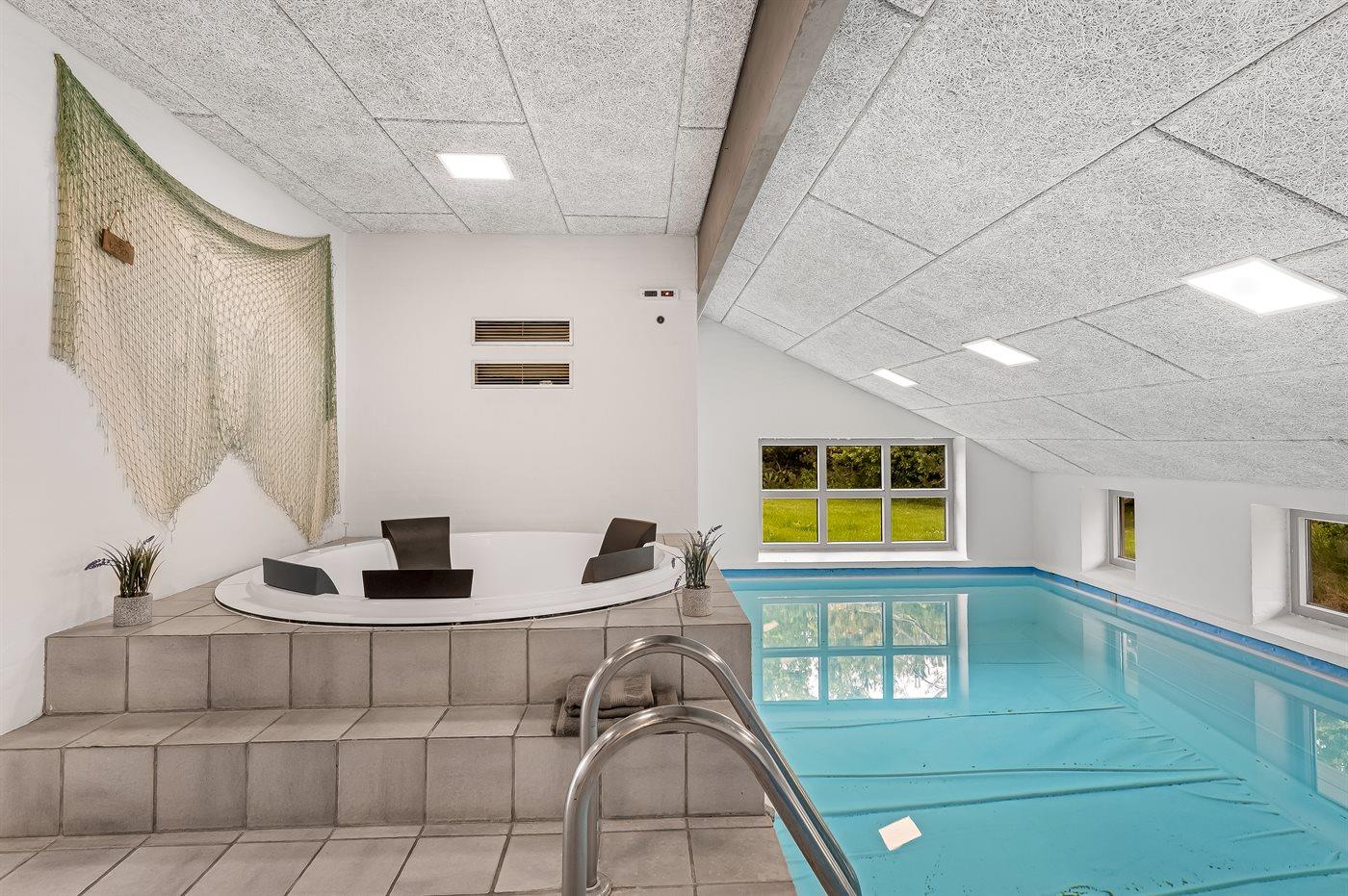 Moderne poolsommerhus i Blåvand med spa, aktivitetsrum og lukket terrasse nær havet.