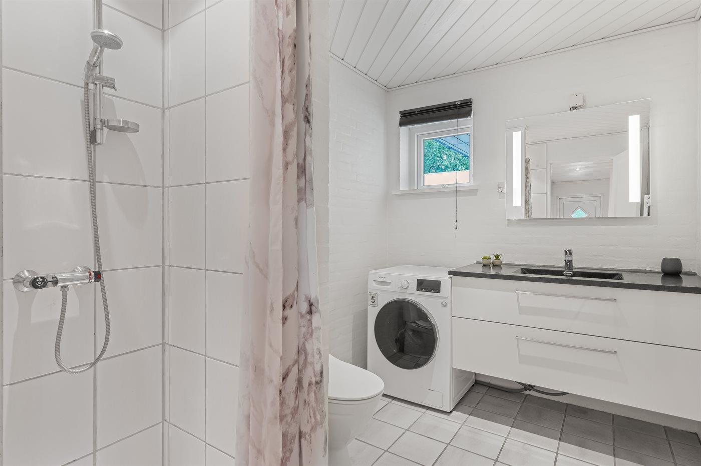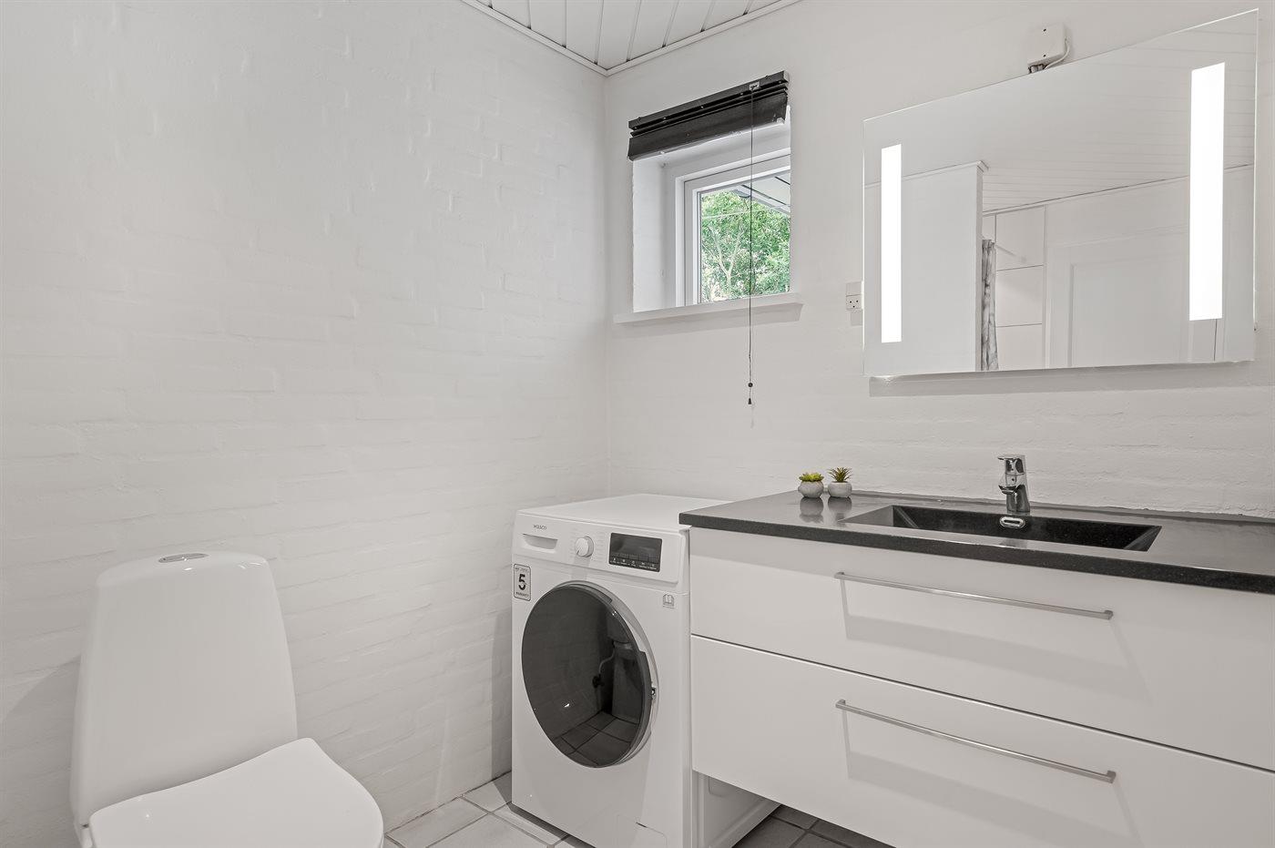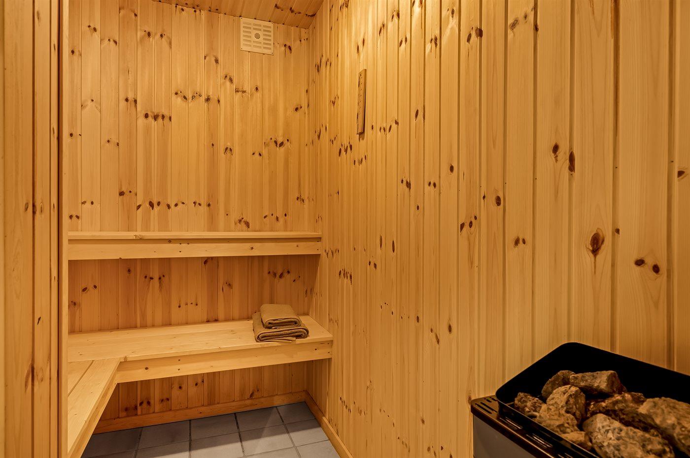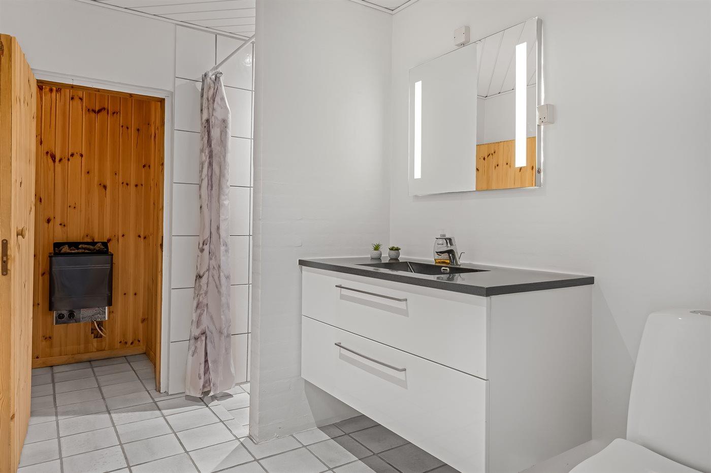 Der er 2 badeværelser med bruseniche og 3 toiletter, heraf 1 gæstetoilet. Der er gulvvarme på 2 badeværelser. I saunaen er der mulighed for afslapning.