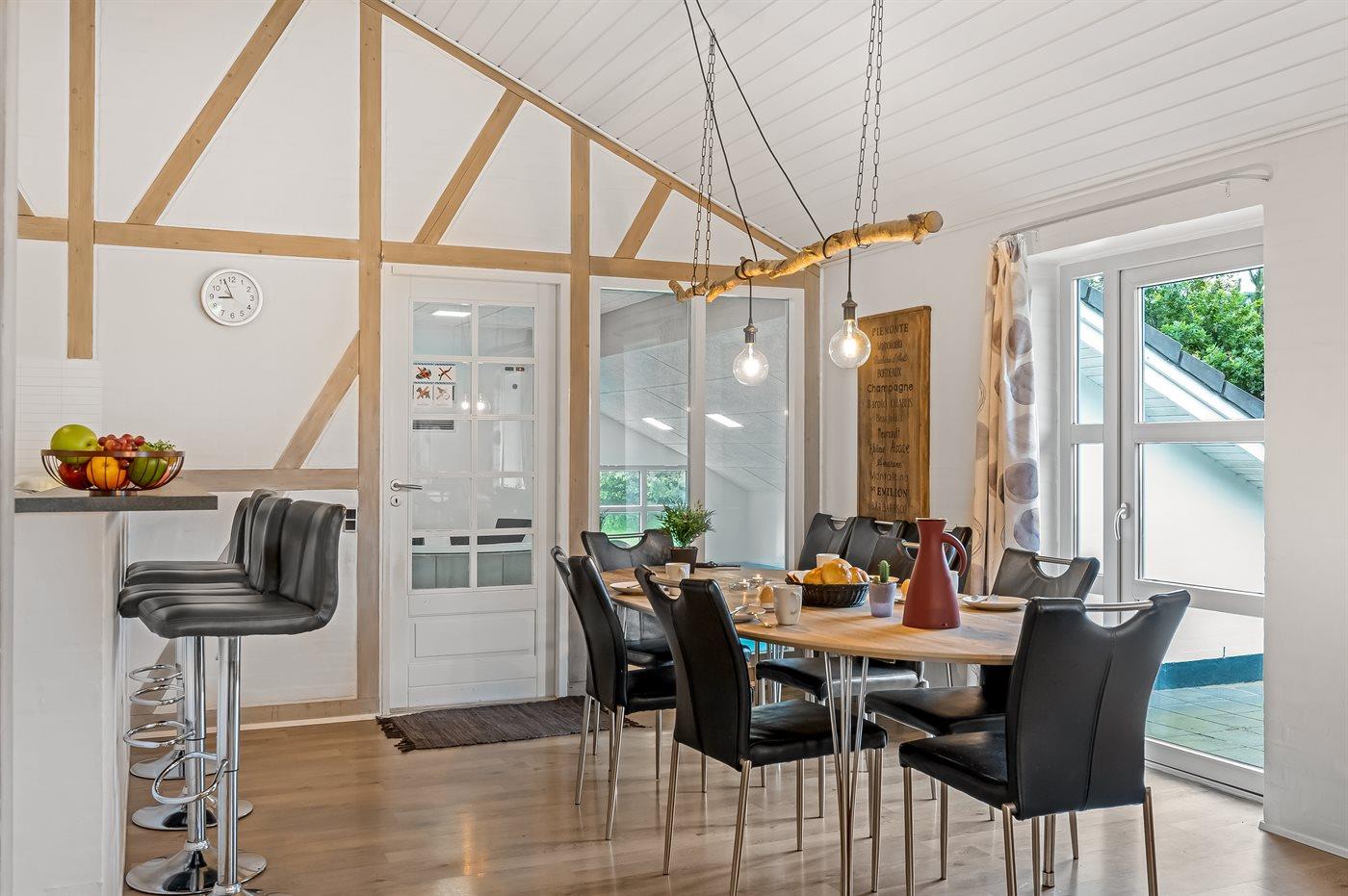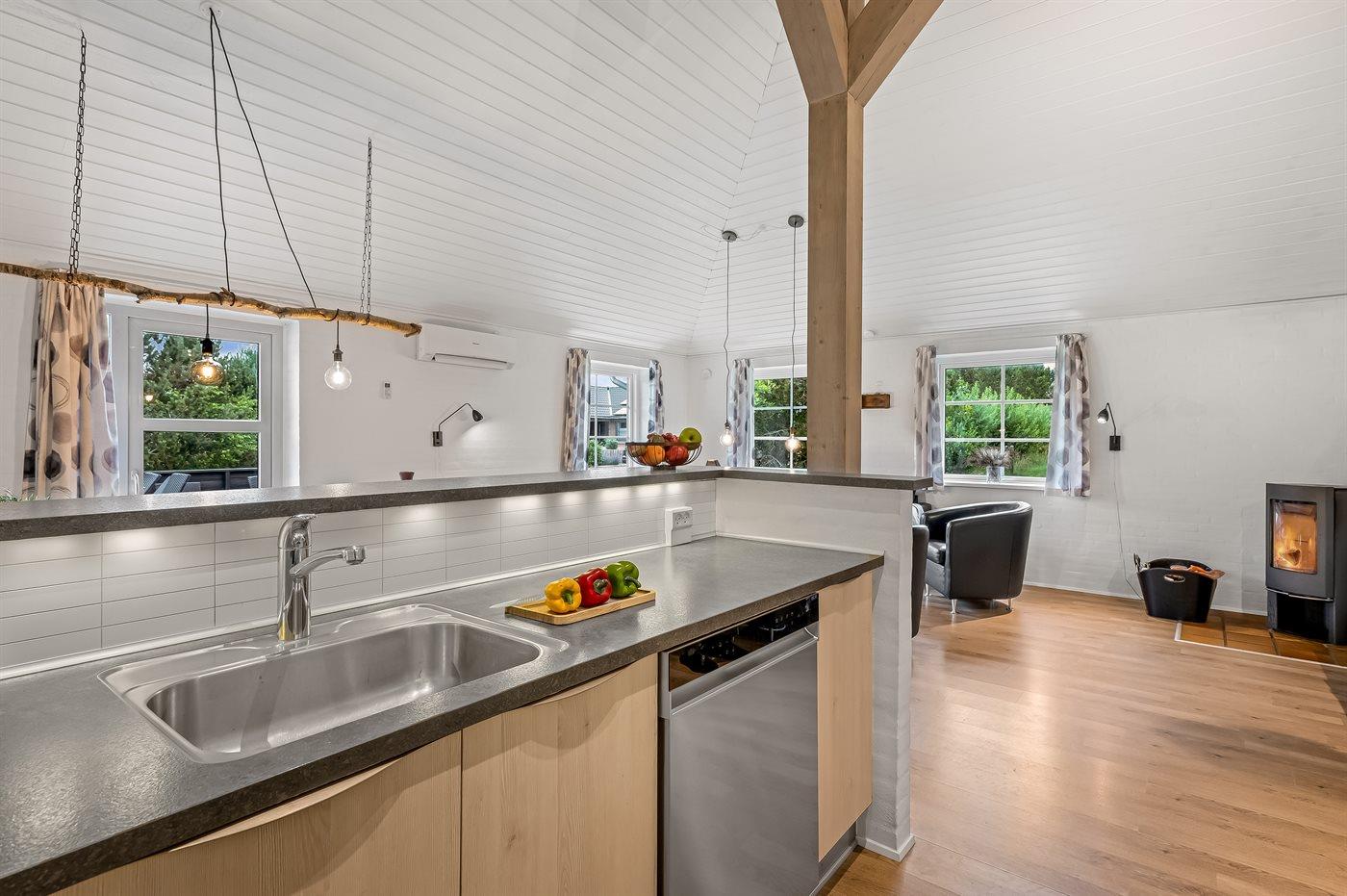 Køkkenet er udstyret med 1 køleskab. Der er 4 keramiske kogeplader, varmluftovn, mikrobølgeovn samt opvaskemaskine.