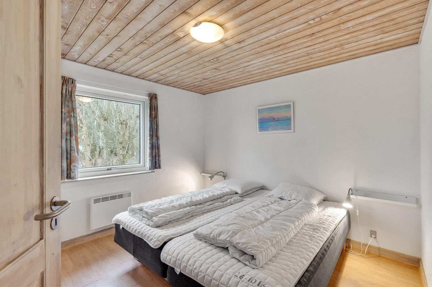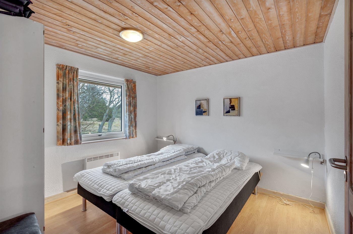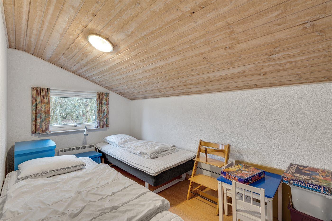 Der er i alt 5 soveværelser. Sovepladserne fordeler sig på: 8 sovepladser i dobbeltsenge. 2 sovepladser i enkeltsenge. Derudover er der 1 stk. barneseng.
