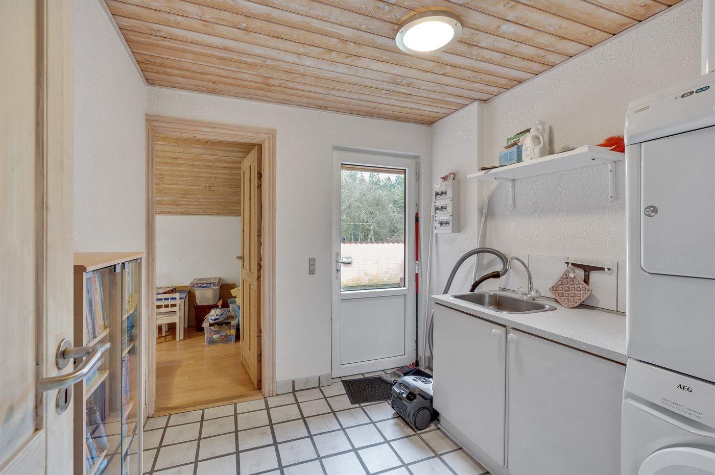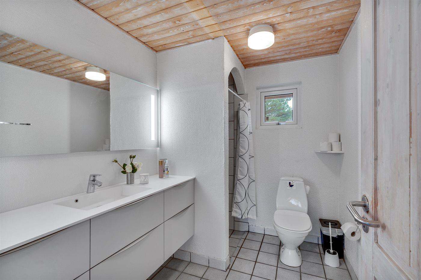Der er 2 badeværelser med bruser og 2 toiletter. Der er gulvvarme på 1 badeværelse. I saunaen er der mulighed for afslapning.