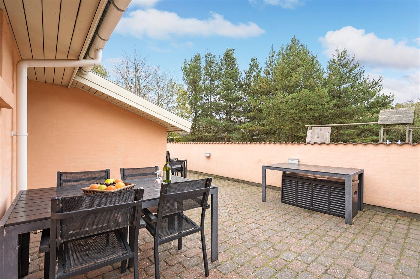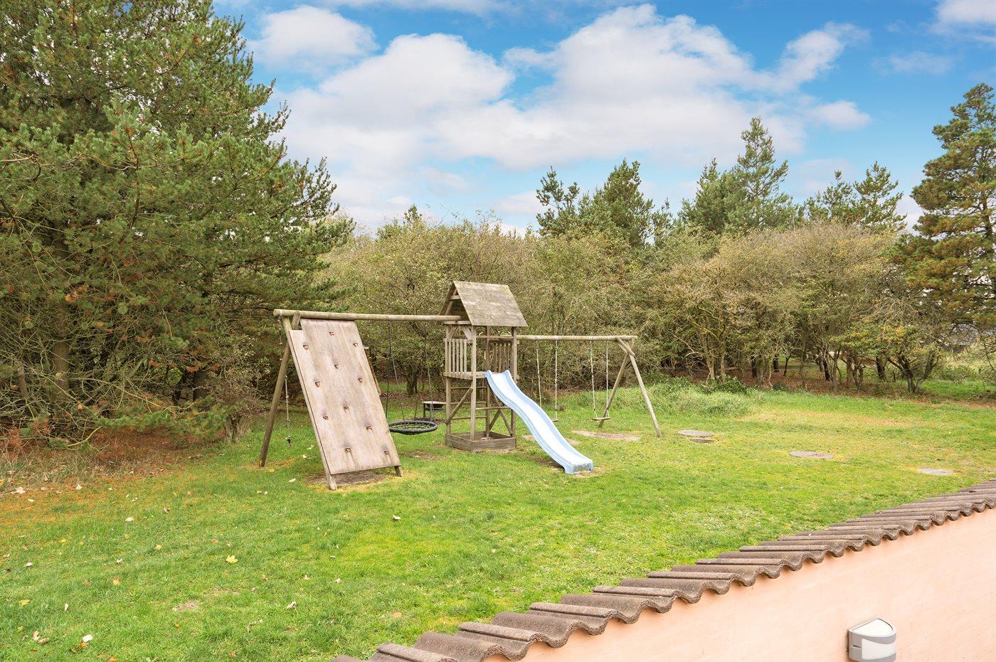 Ferieboligen er beliggende på en 2300 m² stor naturgrund. Der er 3000 m til havet. Der er 500 m til fjorden. Nærmeste forretning er beliggende i en afstand af 7500 m. Til ferieboligen hører 40 m² terrasseareal. Gynge. Sandkasse. Der er installeret stik til opladning af elbil. Type 2 stik. Parkering ved ferieboligen.