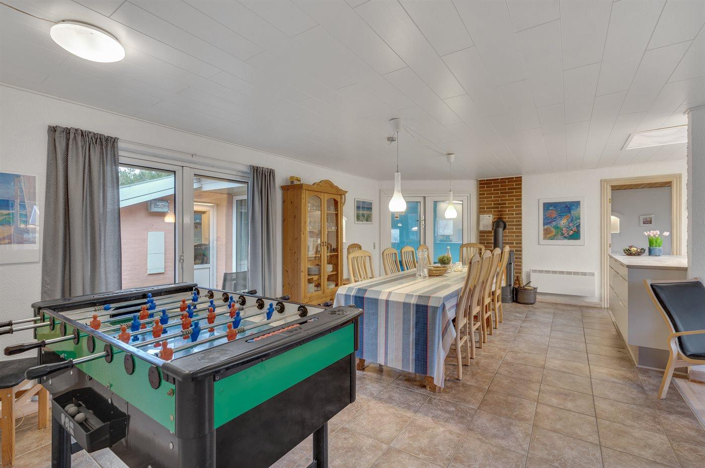 Lyst sommerhus i Blåvand med indendørs pool, spa, sauna og aktiviteter for hele familien.