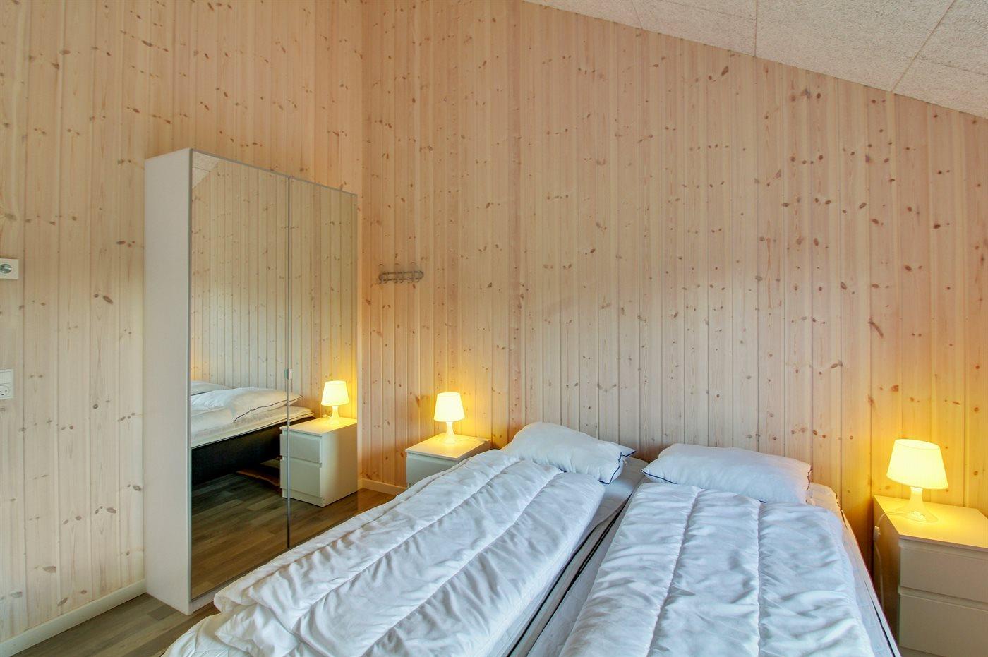 Der er i alt 3 soveværelser. Sovepladserne fordeler sig på: 6 sovepladser i dobbeltsenge. 2 sovepladser på madrasser. 2 af disse sovepladser befinder sig på husets hems. Derudover er der 1 stk. barneseng.