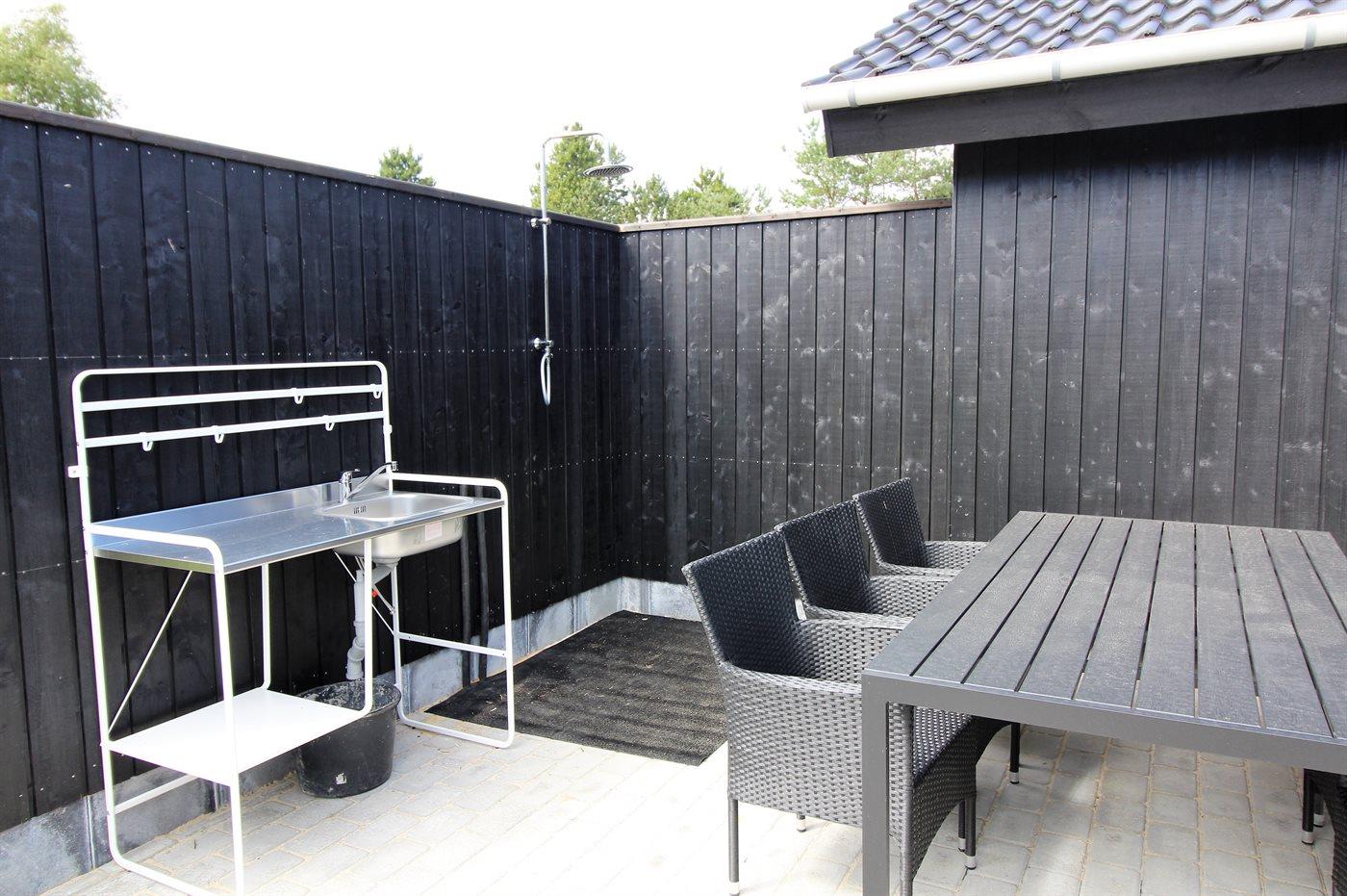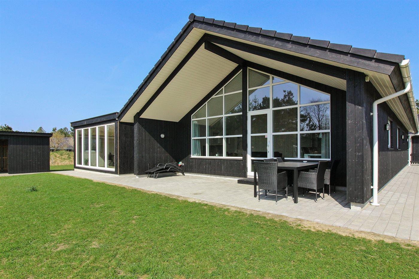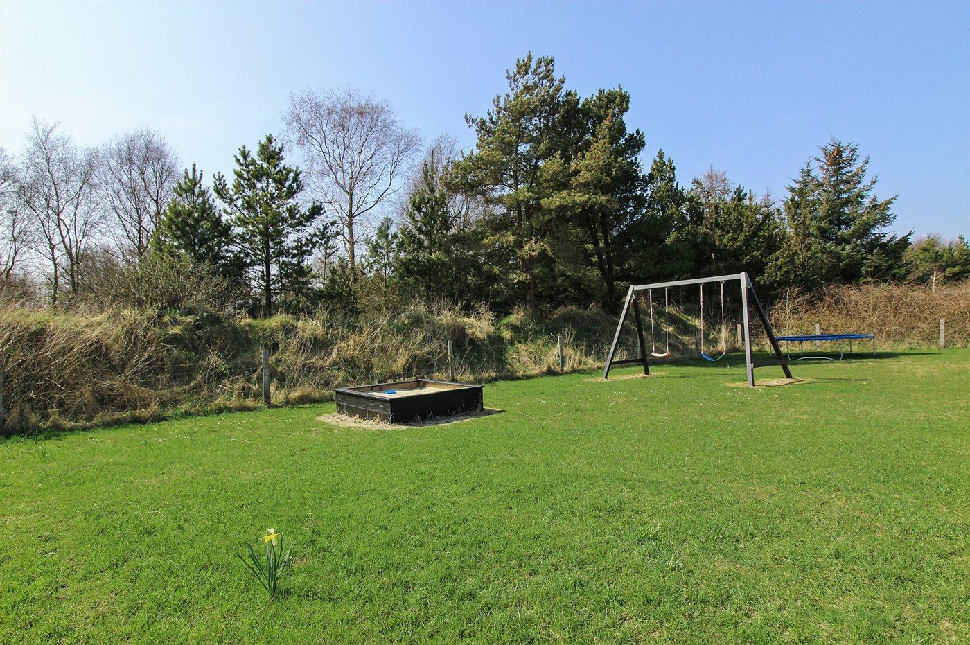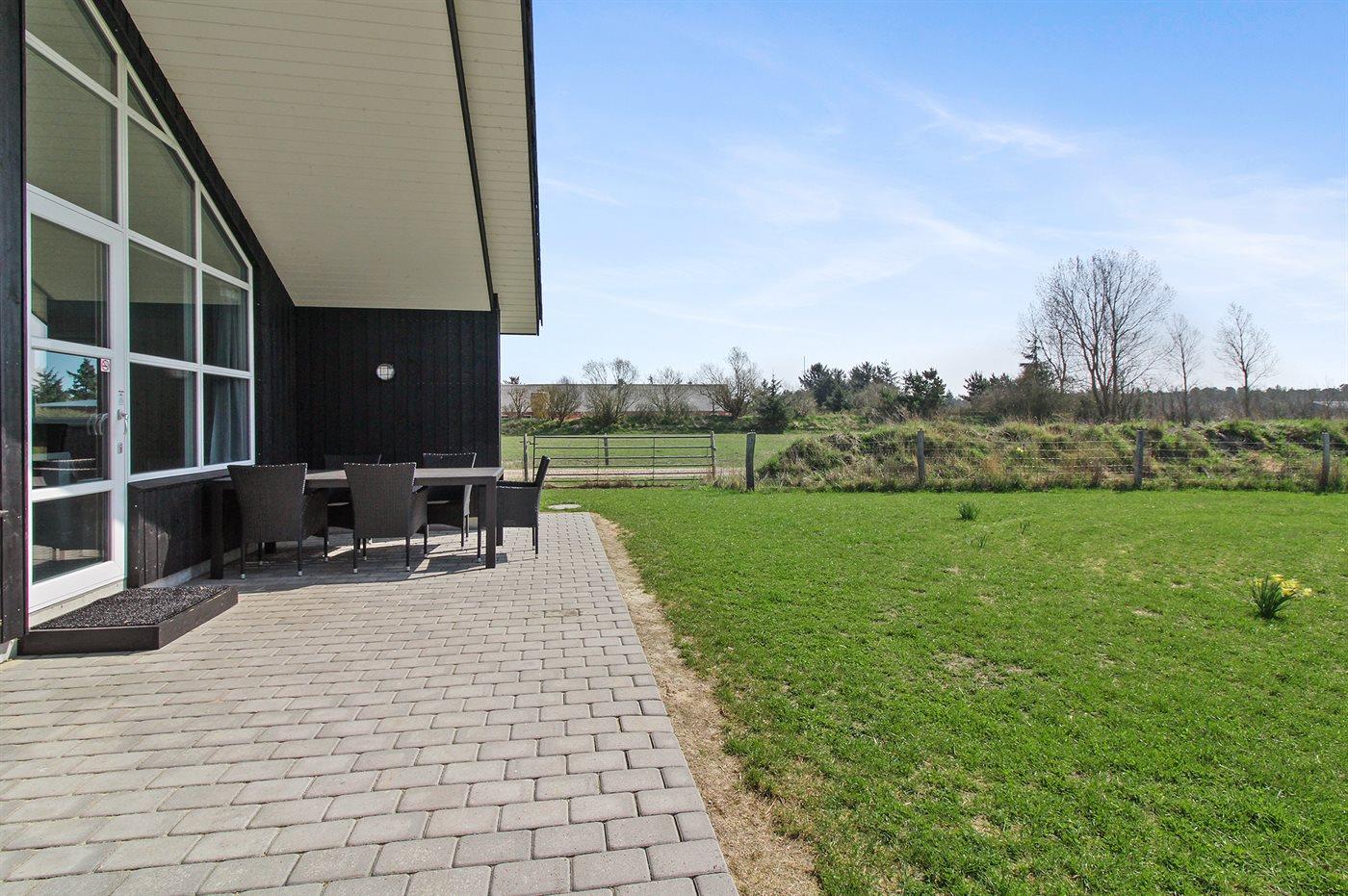 Ferieboligen er beliggende på en 3500 m² stor naturgrund. Grunden er indhegnet. Der er 3000 m til havet. Der er 1500 m til fjorden. Nærmeste forretning er beliggende i en afstand af 7500 m. Der er en golfbane i en afstand af 1500 m. Til ferieboligen hører 20 m² terrasseareal. Desuden er der 14 m² overdækket terrasse. Ligeledes er der adgang til udestue. Gynge. Sandkasse. Trampolin. Udendørs bruser. Grill til rådighed. Der er installeret stik til opladning af elbil. Parkering ved ferieboligen.