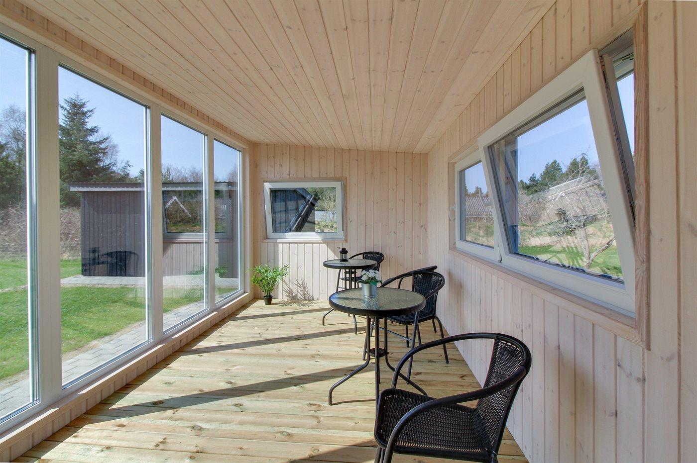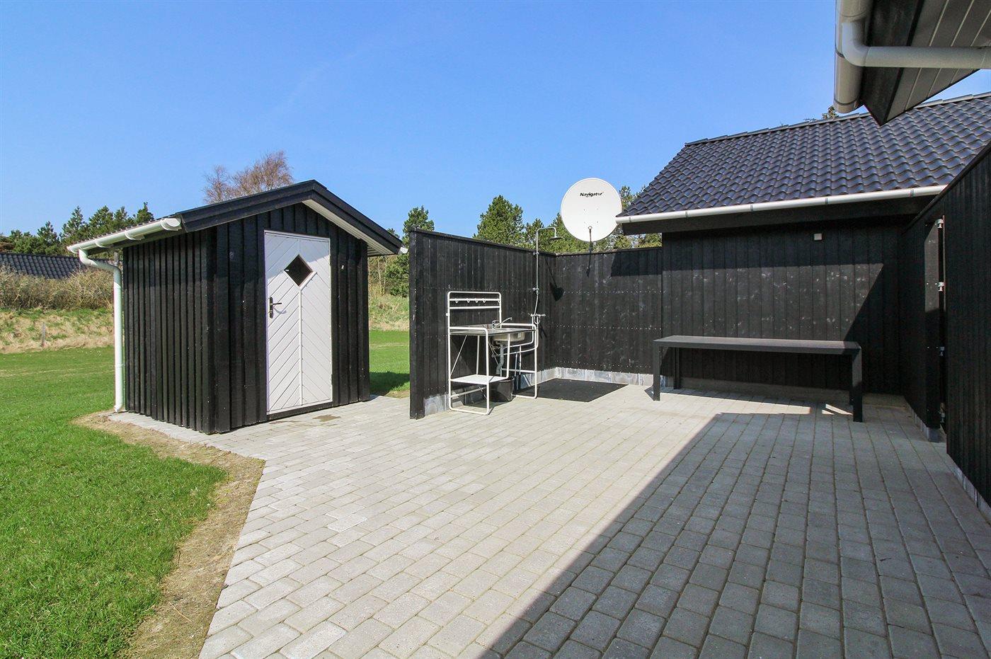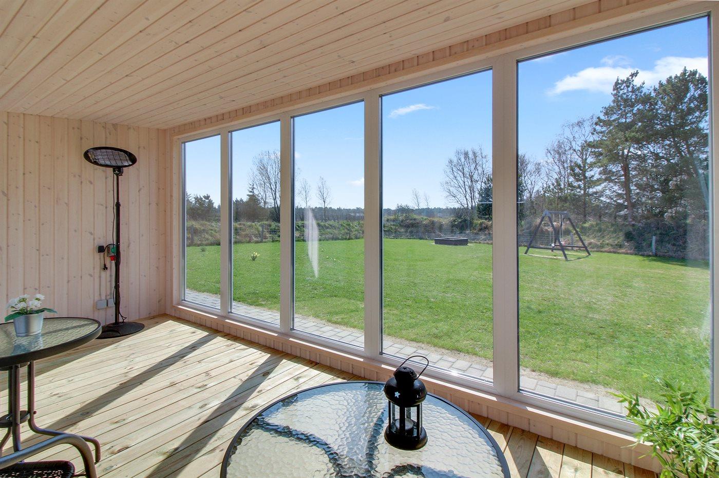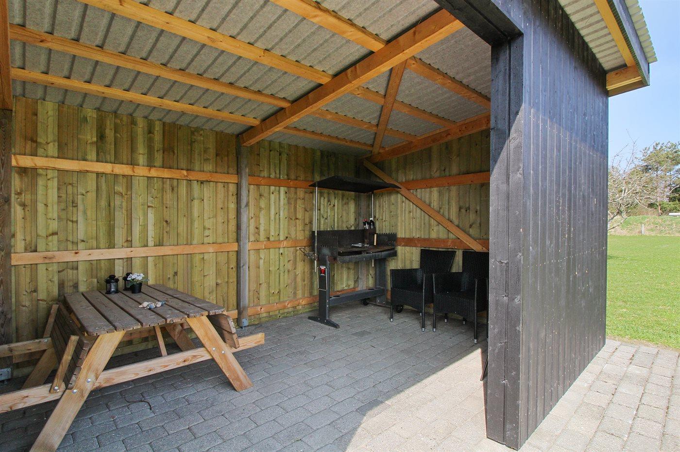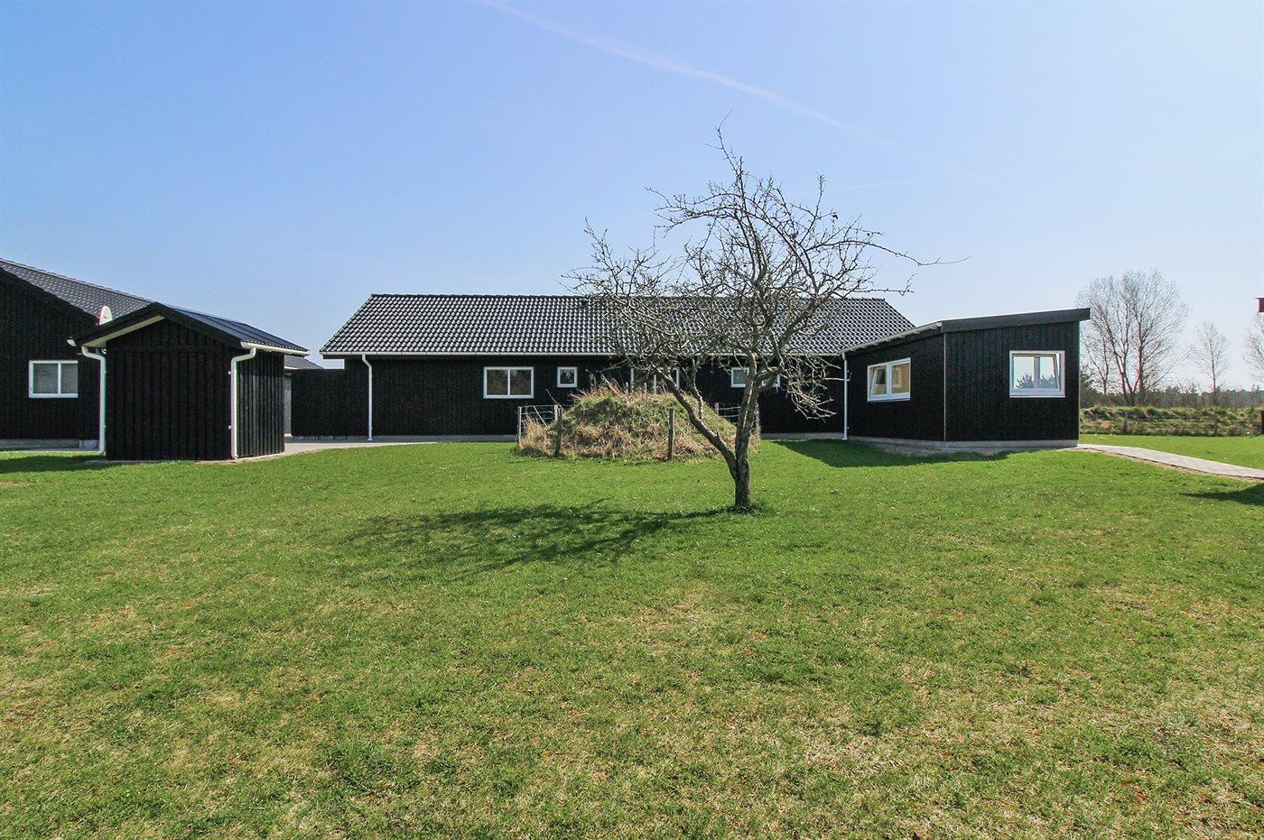Ferieboligen er beliggende på en 3500 m² stor naturgrund. Grunden er indhegnet. Der er 3000 m til havet. Der er 1500 m til fjorden. Nærmeste forretning er beliggende i en afstand af 7500 m. Der er en golfbane i en afstand af 1500 m. Til ferieboligen hører 20 m² terrasseareal. Desuden er der 14 m² overdækket terrasse. Ligeledes er der adgang til udestue. Gynge. Sandkasse. Trampolin. Udendørs bruser. Grill til rådighed. Der er installeret stik til opladning af elbil. Parkering ved ferieboligen.
