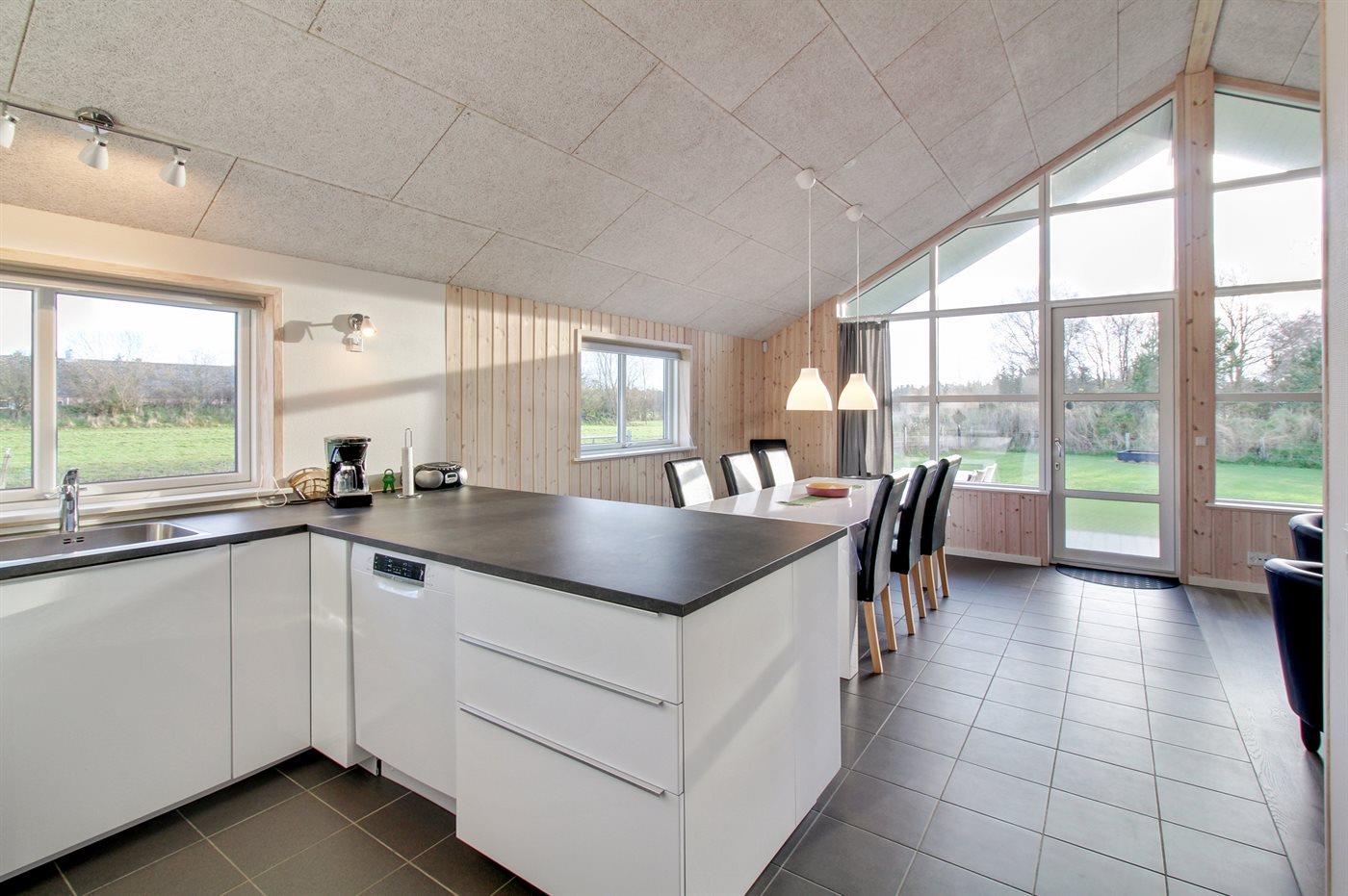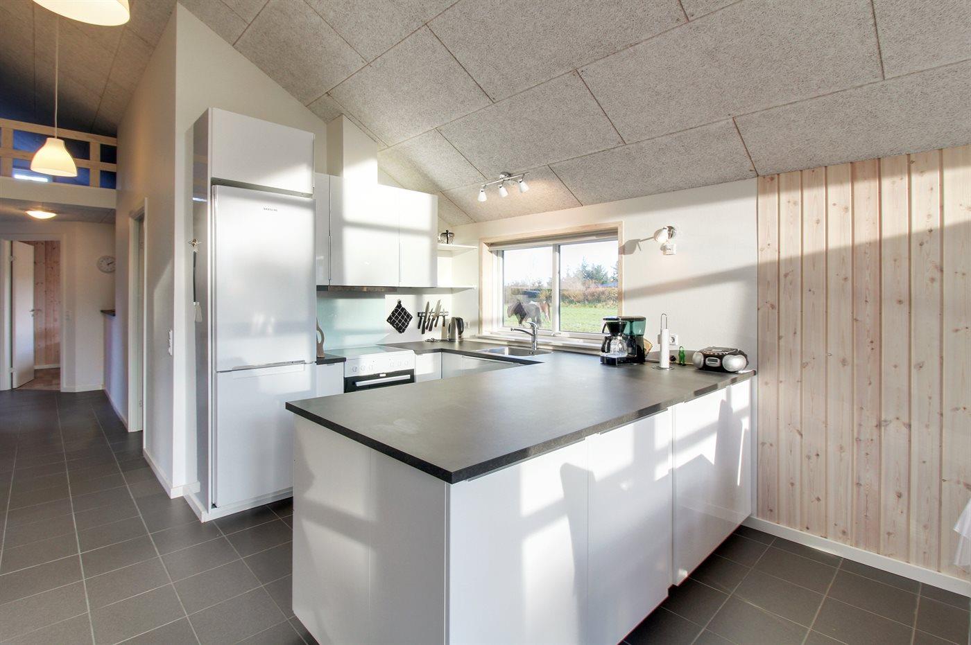 Køkkenet er udstyret med 1 køleskab. Der er 4 keramiske kogeplader, varmluftovn, mikrobølgeovn samt opvaskemaskine.