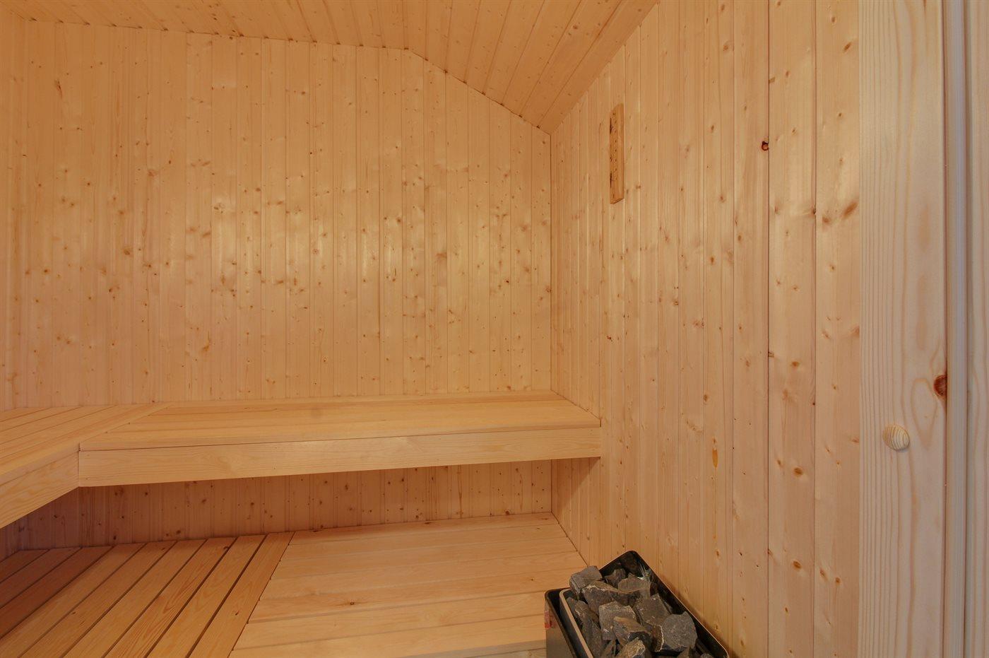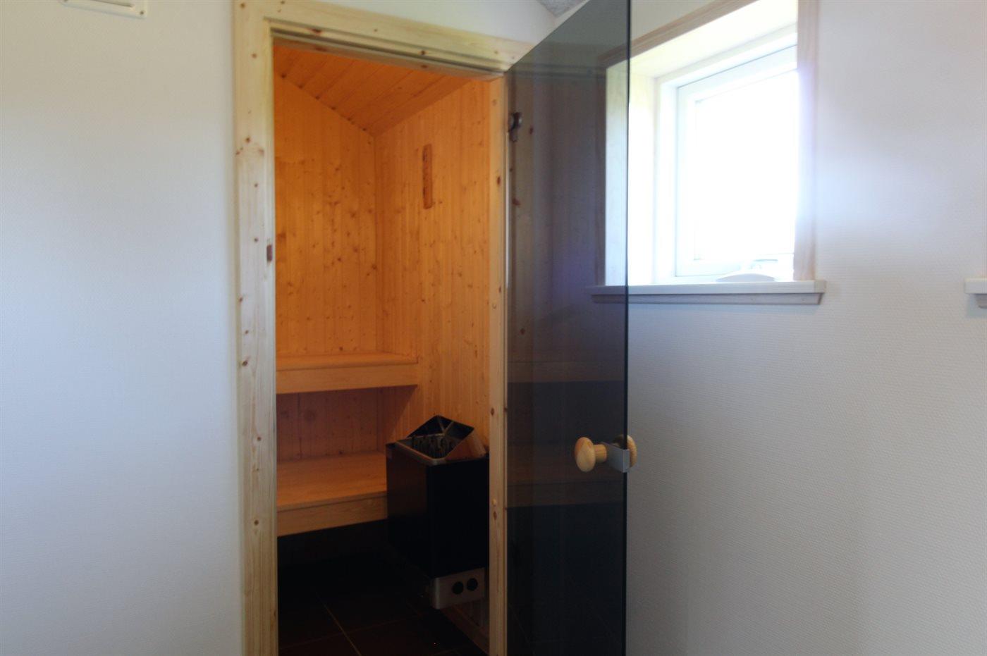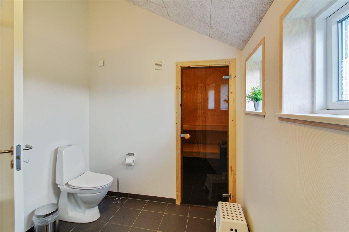 Der er 2 badeværelser med bruseniche og 2 toiletter. Der er gulvvarme på 2 badeværelser. I saunaen er der mulighed for afslapning.
