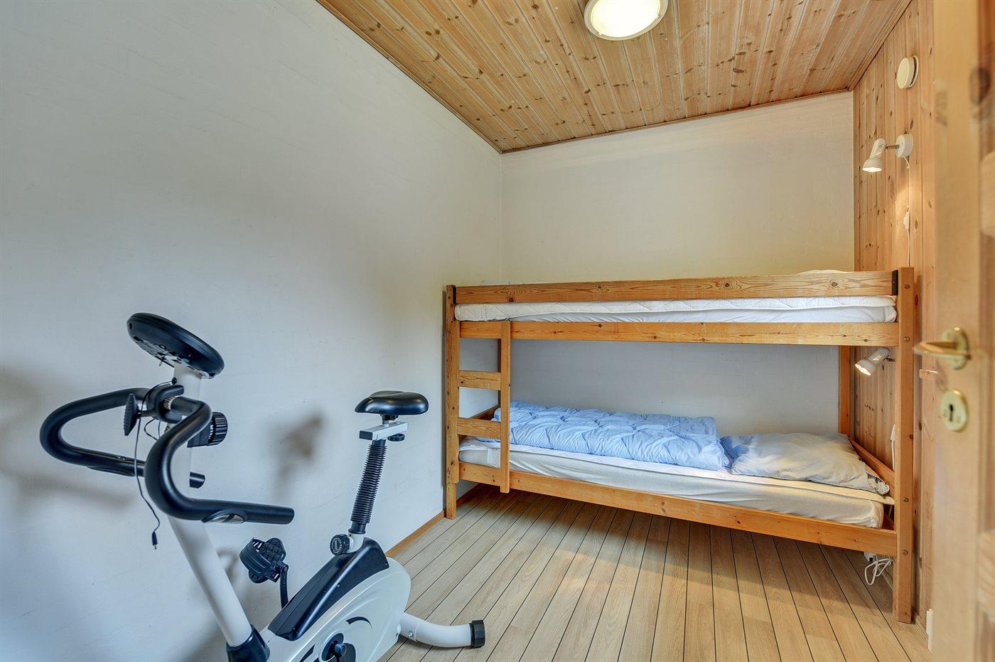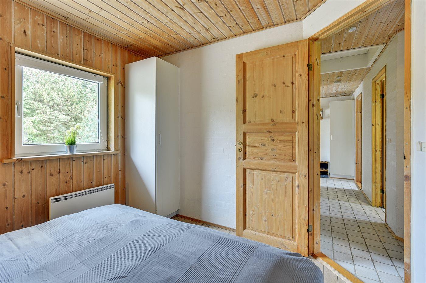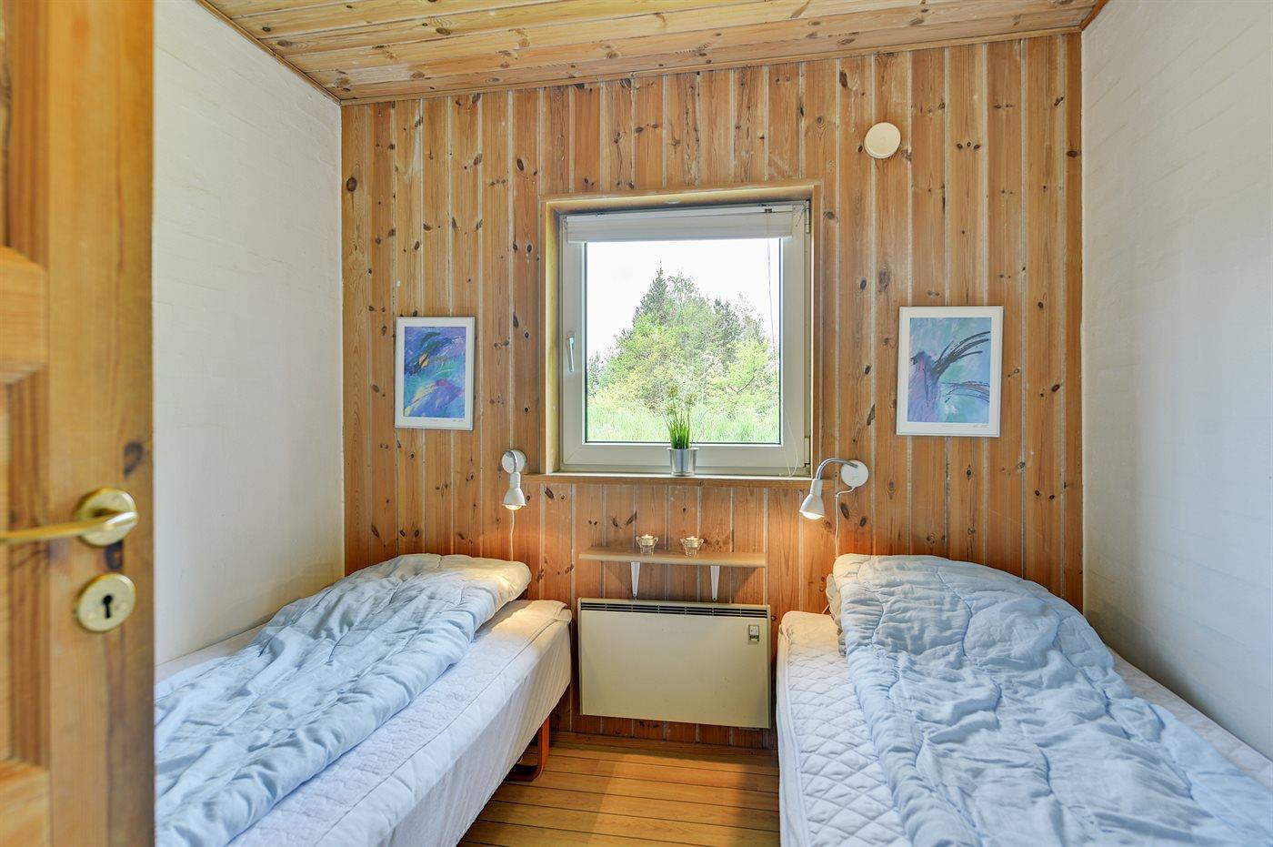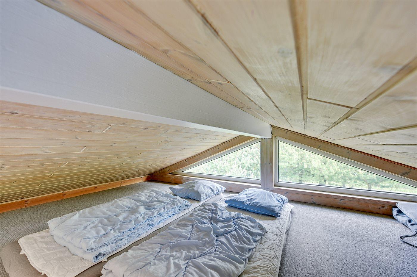 Der er i alt 5 soveværelser. Sovepladserne fordeler sig på: 6 sovepladser i dobbeltsenge. 2 sovepladser i enkeltsenge. 2 sovepladser i køjeseng. 2 sovepladser på madrasser. 2 af disse sovepladser befinder sig på husets hems. Derudover er der 1 stk. barneseng.
