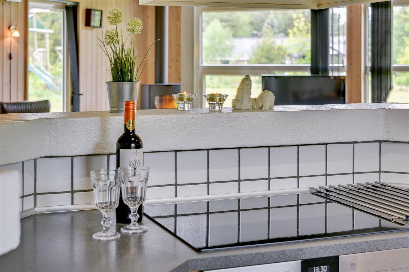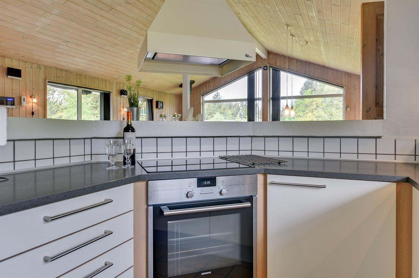 Køkkenet er udstyret med 1 køleskab. Der er 4 induktionskogeplader, varmluftovn, mikrobølgeovn samt opvaskemaskine Der er gulvvarme i køkkenet.