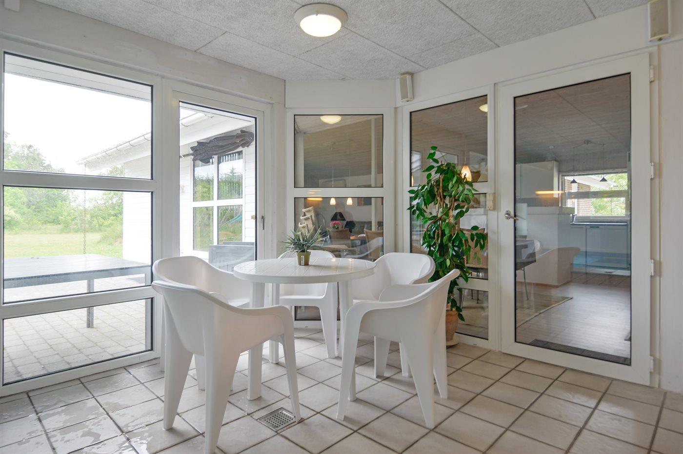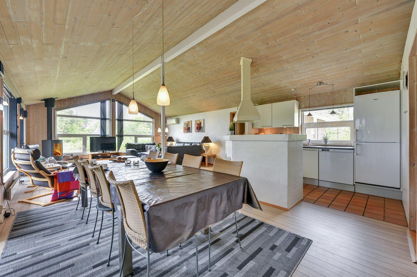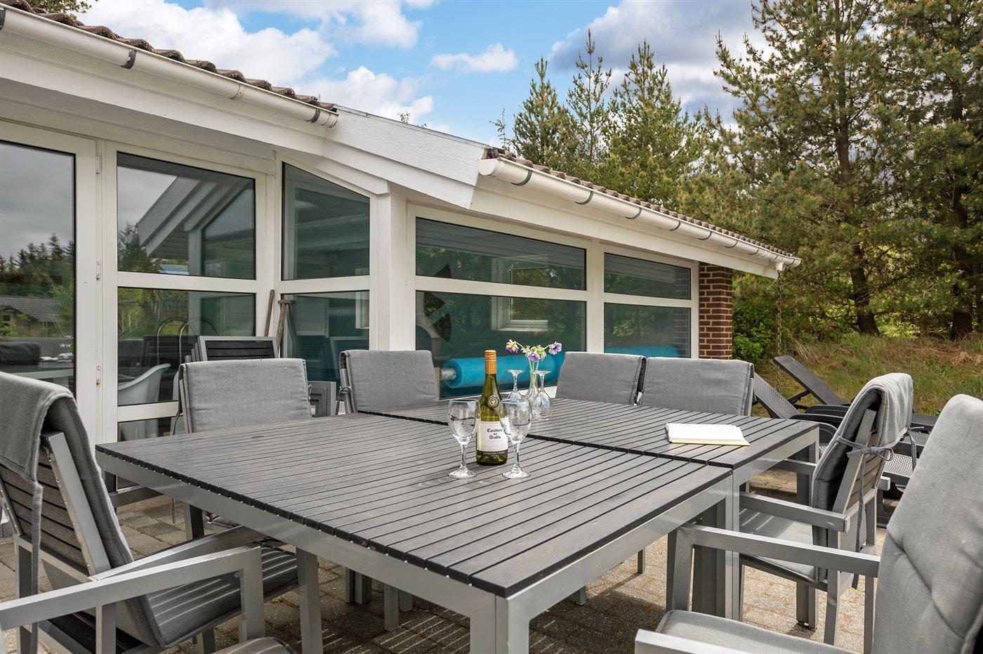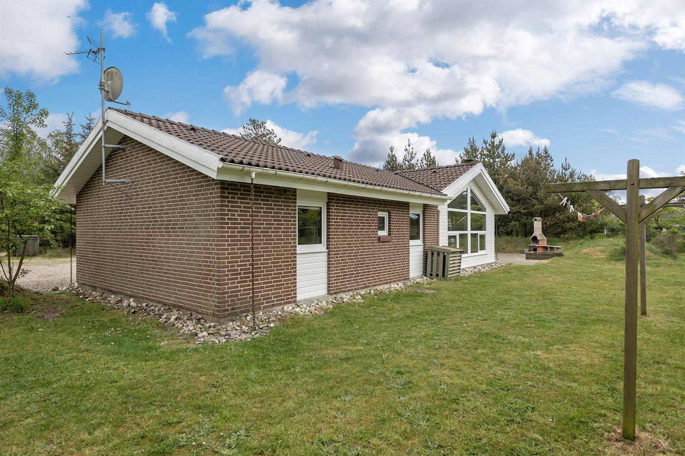 Dette sommerhus ligger i Ho, hvor der er mange aktivitetsmuligheder som bowling, golf, ridning, zoo og fiskesø. Huset ligger desuden kun 5 minutters kørsel fra én af Danmarks bedste badestrande, men dog så langt derfra, at her kan man finde mere ro. Huset er praktisk og flot møbleret og byder på mange faciliteter, som gør det velegnet til ferieophold året rundt. Swimmingpoolområdet er adskilt fra stuen og køkkenet af et glasparti, der gør det muligt at holde øje med de badende. I dejligt vejr kan man slappe af i fred og ro på den sydvendte terrasse, da huset ligger på en naturgrund, der er omgivet af beplantning.