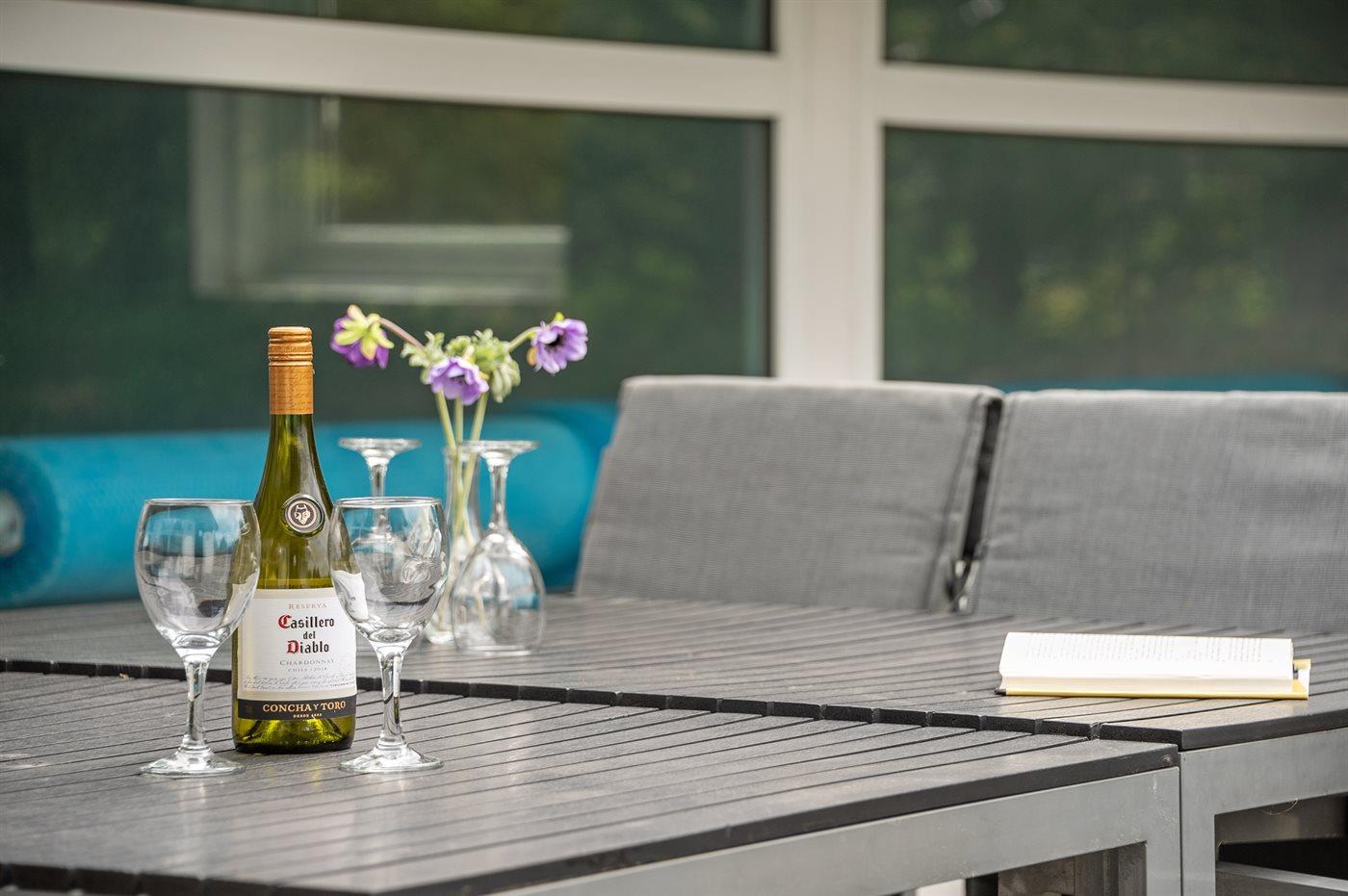 I den indendørs standvandsspa er der plads til 4 personer.