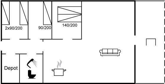 Der er i alt 3 soveværelser. Sovepladserne fordeler sig på: 2 sovepladser i dobbeltseng. 3 sovepladser i enkeltsenge. Derudover er der 1 stk. barneseng.