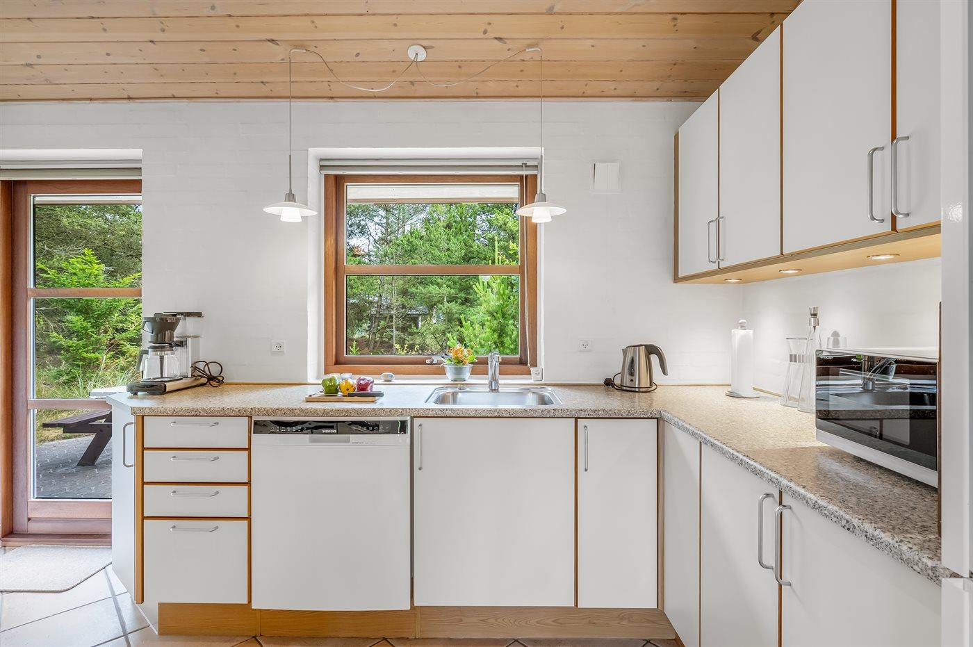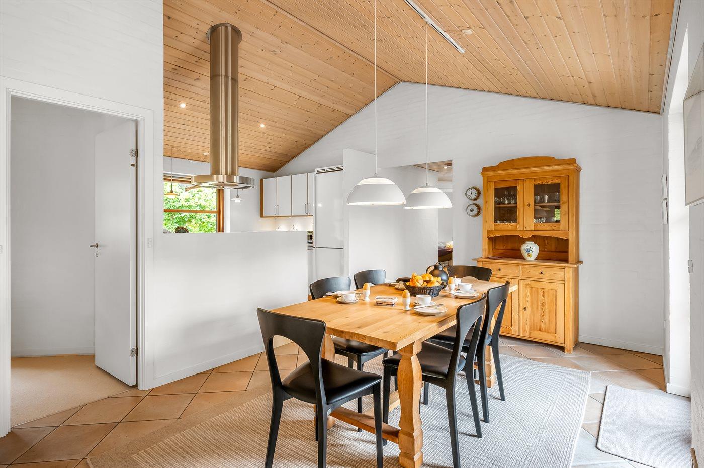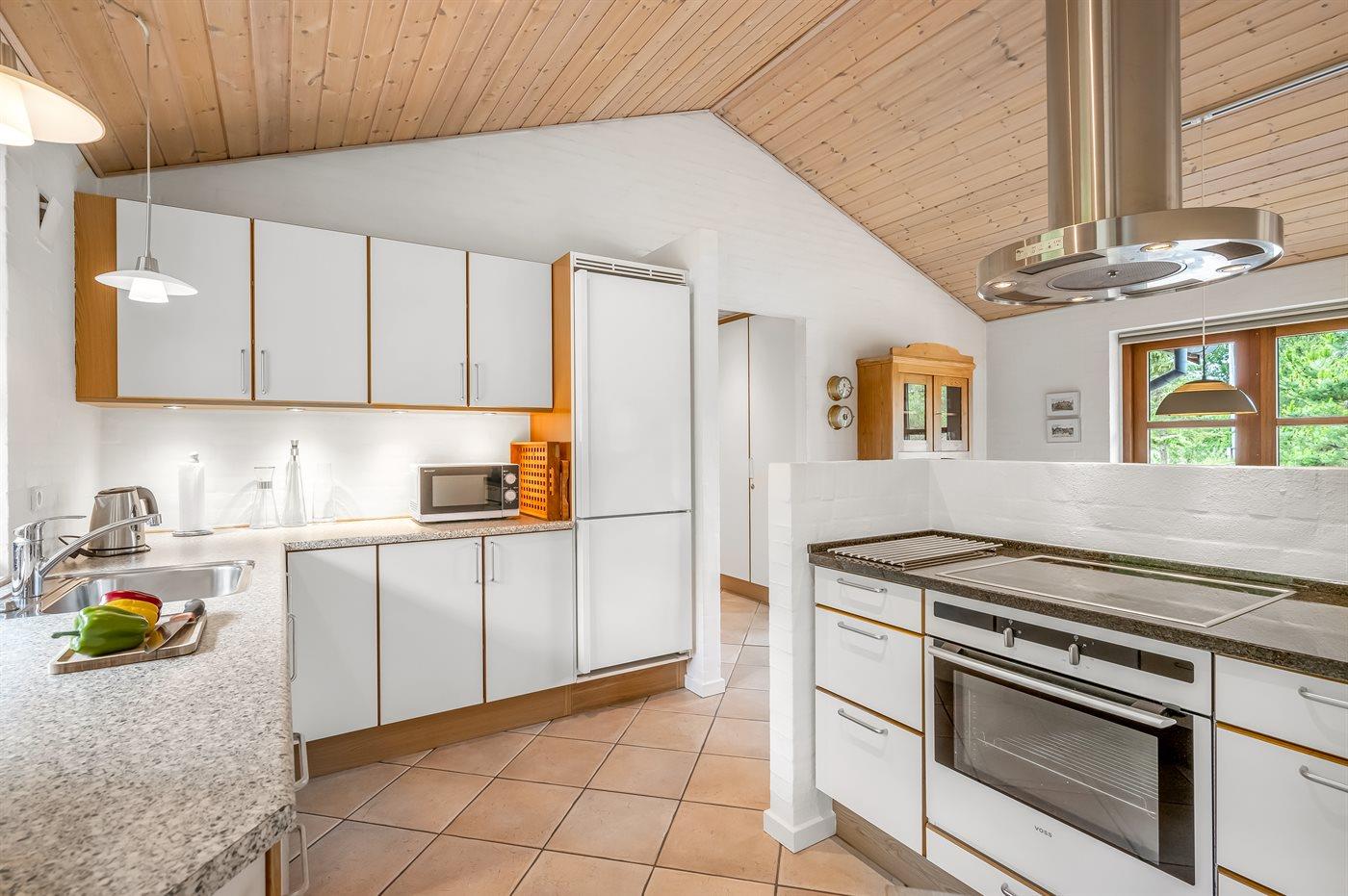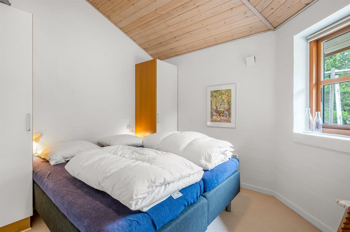 Flot og eksklusivt sommerhus i sten, opført i 2005, beliggende på en stor naturgrund i skønne omgivelser. Til huset hører et 50 m2 stort flisebelagt og delvist overdækket terrasseareal med havemøbler. To dejlige badeværelser med gulvvarme og bruseniche - det ene indeholder desuden vaskemaskine, tørretumbler, 2- pers. spa samt adgang til husets sauna. Det lyse og moderne køkken er kombineret med husets alrum og bl.a. udstyret med opvaskemaskine, mikrobølgeovn, fryser, varmluftovn samt komfur med keramiske kogeplader. Desuden gratis internetforbindelse til rådighed (computer skal medbringes). Opholdsstuen er indrettet med brændeovn, stereoanlæg med CD-afspiller, DVD-afspiller og TV med parabol (digital). Husets sovepladser fordeler sig på 3 soveværelser - alle med dobbeltseng. Desuden findes der barneseng og høj barnestol samt sandkasse og gynger til de yngste i familien. Et fantastisk sommerhus - til den kræsne lejer.