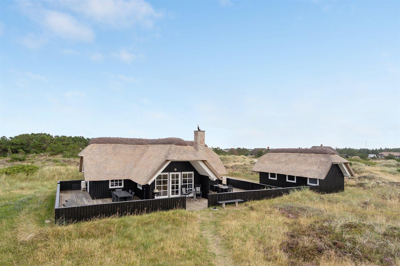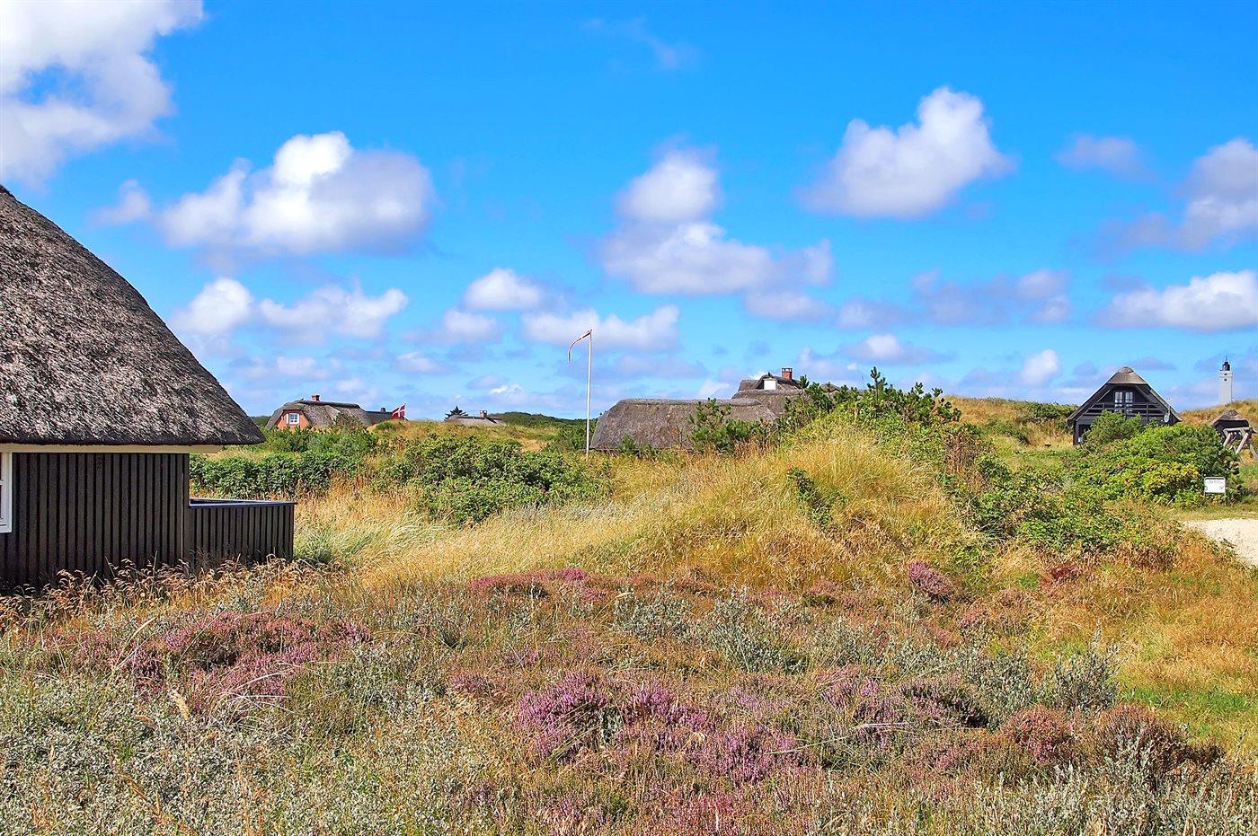 Skønt sommerhus beliggende på en meget stor grund, midt i den skønneste natur, tæt ved stranden og i nærheden af fyret. Fra huset er der en god udsigt over klitterne og hedelandskabet.
