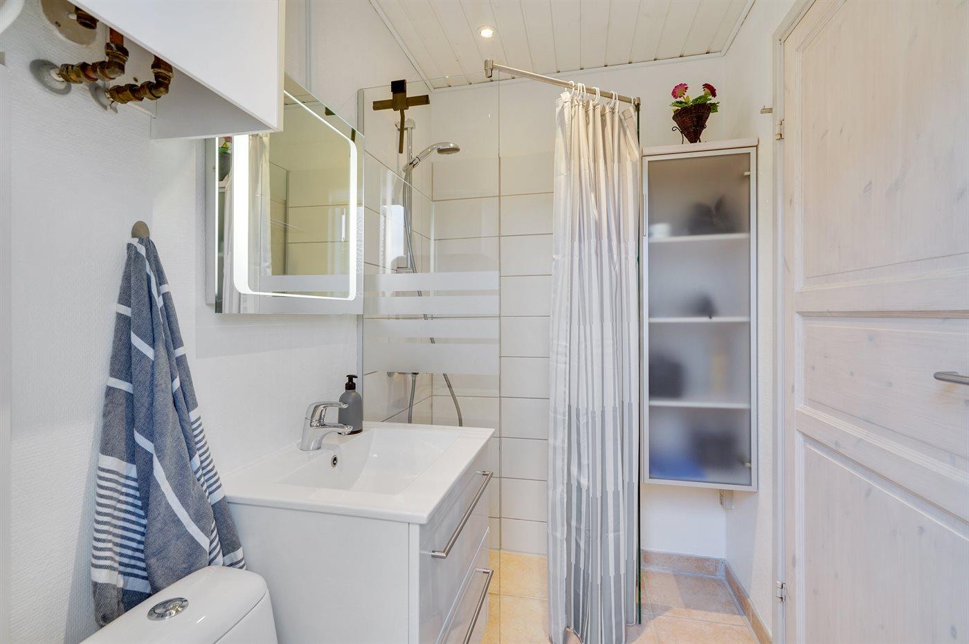 Der er 1 badeværelse med bruseniche og 1 toilet.. Der er gulvvarme på 1 badeværelse.