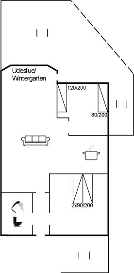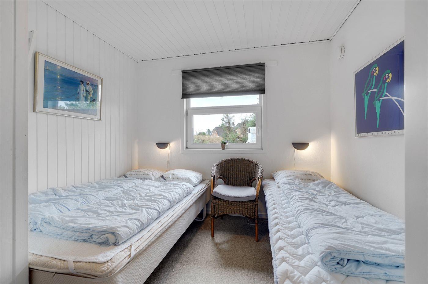 Der er i alt 2 soveværelser. Sovepladserne fordeler sig på: 2 sovepladser i dobbeltseng. 2 sovepladser i enkeltsenge.