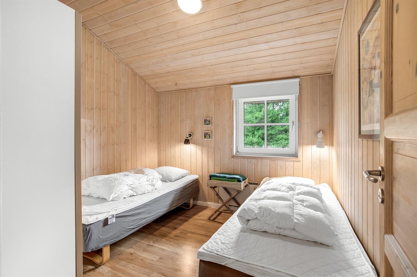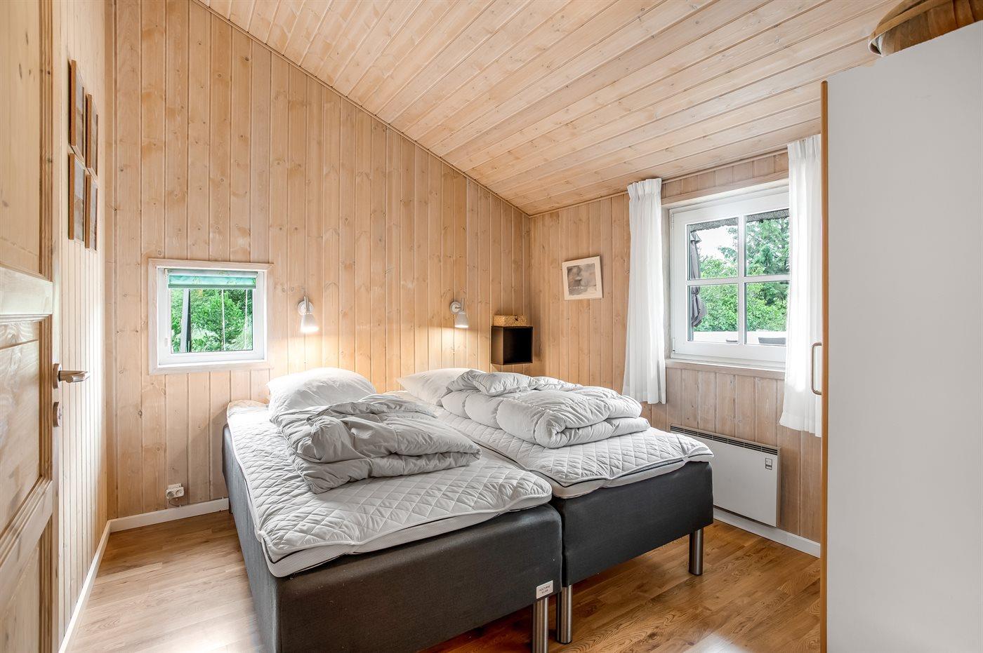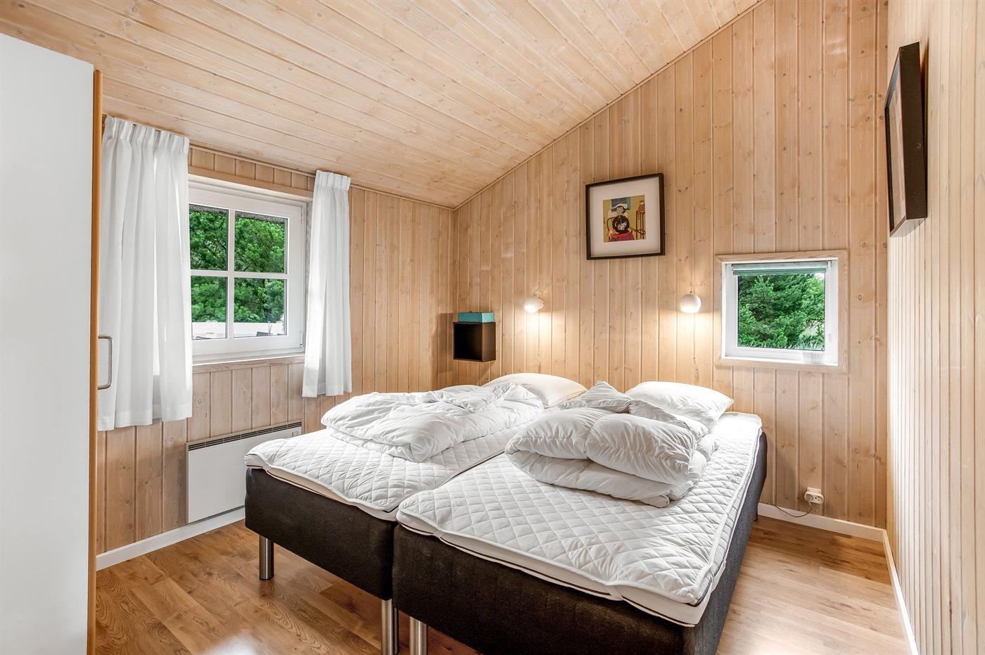 Der er i alt 4 soveværelser. Sovepladserne fordeler sig på: 4 sovepladser i dobbeltsenge. 4 sovepladser i enkeltsenge. Derudover er der 1 stk. barneseng.